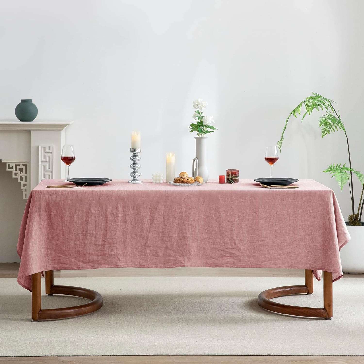 EVERLY 100% Pure Linen Rectangle Tablecloths 60x84Inches for Dining,Buffet Parties,Picnic,Events,Weddings and Restaurants,Decorative Halloween,Thanksgiving Machine Washable Tablecloths-Muddy Pink
