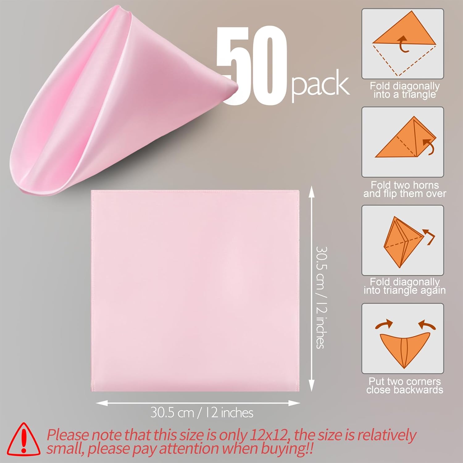 - 🌺[ Preferred Decorations ]: Package includes 50pcs x satin blush pink napkins (12" x 12"/30mm x 30mm). Numerous quantities will satisfy your napkin needs for every party. Satin table napkins are sized to decorate many occasions such as weddings, birthdays, banquets, buffets, dinner parties, parties, picnics, anniversaries, Christmas, Thanksgiving. It can also be used in kitchen, home decor, indoor or outdoor events. Definitely one of your daily must-have decorations.