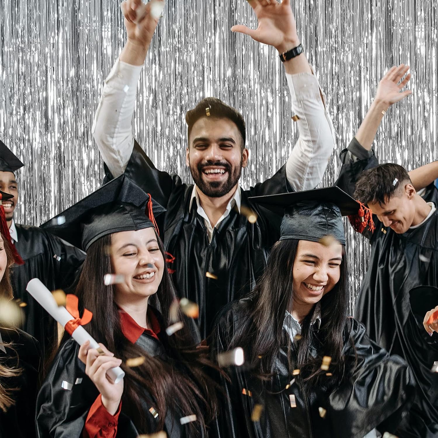 - Celebration Party Decorations: You can use this shiny gorgeous tinsel foil fringe background to decorate your celebration party. Hang them on a carpeted end or wall as a backdrop,or it could be one entrance to the party. You can paired with an LED light, balloons, banners and various photo props on this backdrop. All the guests who come to bless you will feel your love and beauty and was remembered for having a great party!