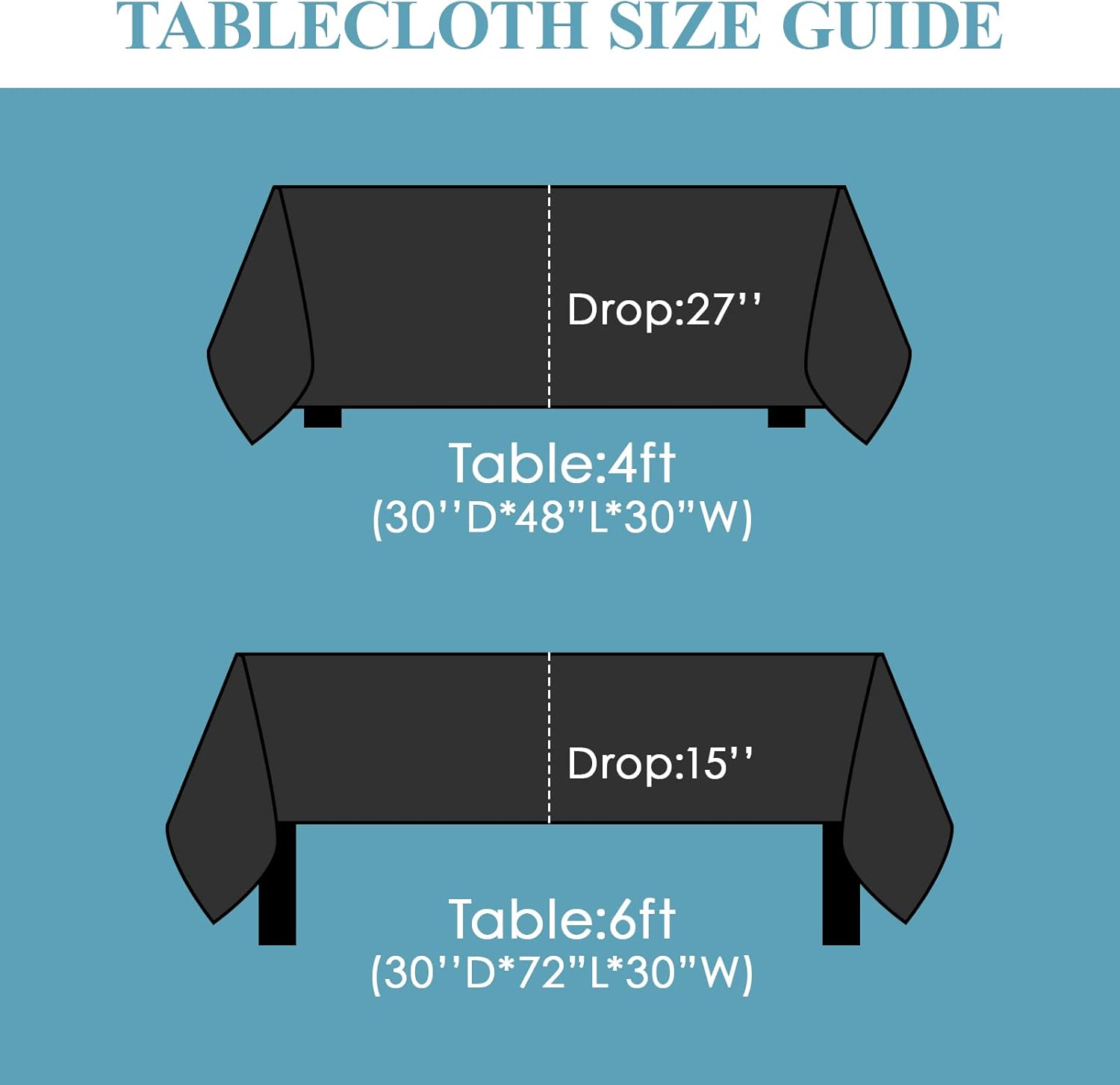 - Product Size: 60*84 inch black rectangular tablecloth for 4ft table and 6ft dining table, according to the effect you want to use the tablecloth, and the size of your dining table, choose the right size tablecloth.