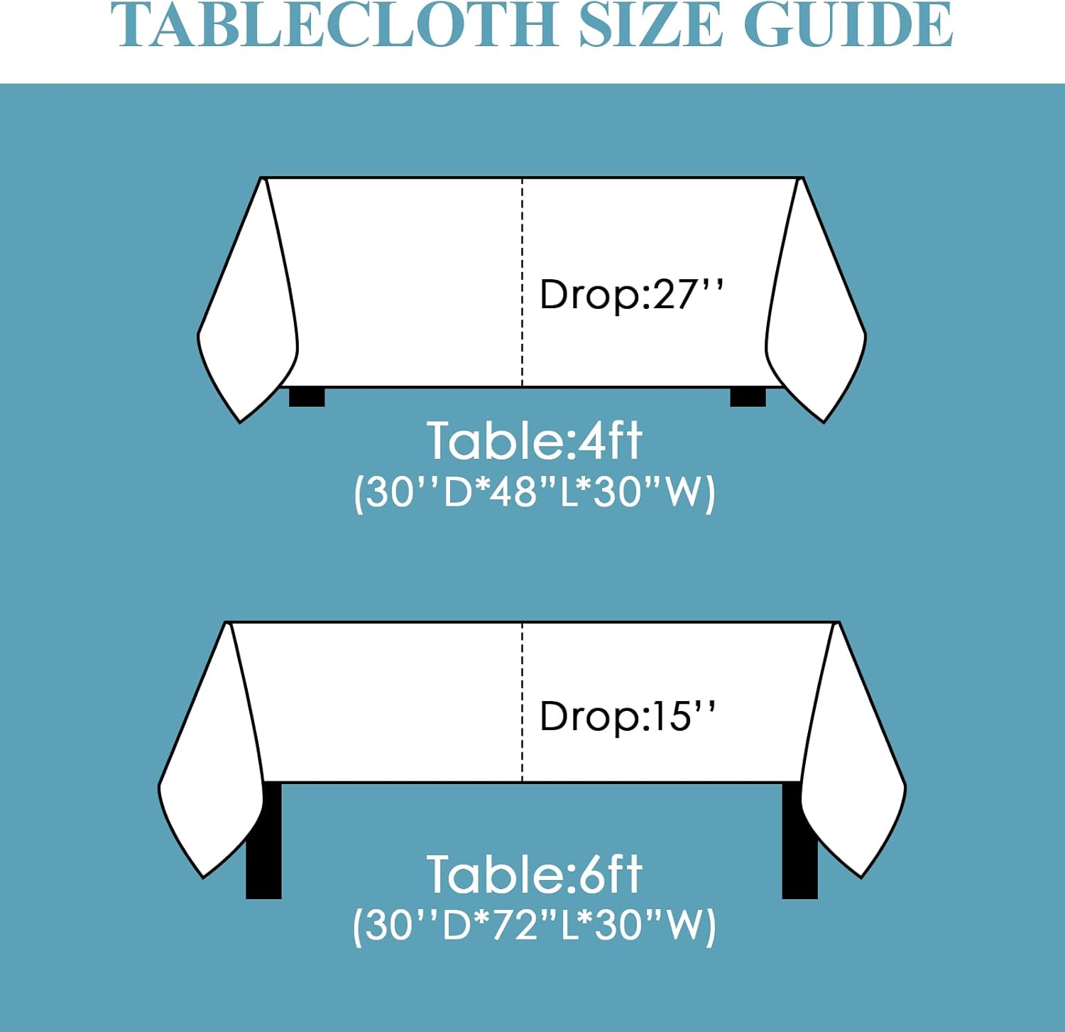 - Product Size: 60*84 inch white rectangular tablecloth for 6ft table and 8ft dining table, according to the effect you want to use the tablecloth, and the size of your dining table, choose the right size tablecloth