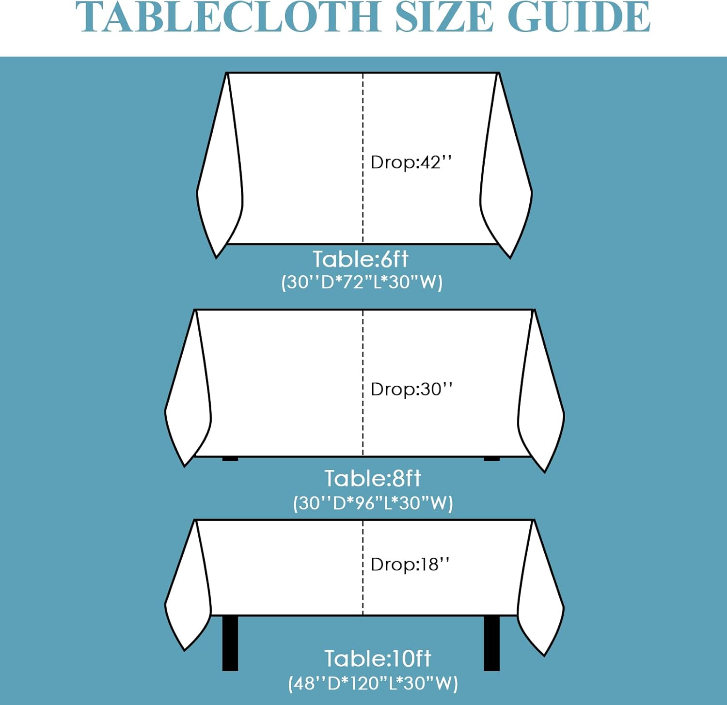 - Durable and Easy to Care: High quality polyester material makes the white tablecloth is durable, stains will not invade, and does not deform or shrink, while eliminating the problem of hand washing, machine wash and dry in cold water