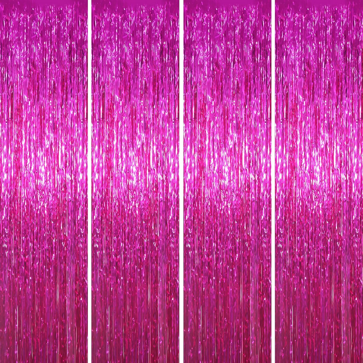 4 Pack Pink Foil Fringe Backdrop Curtains, Tinsel Streamers Birthday Party Decorations, Fringe Backdrop for Graduation, Baby Shower, Gender Reveal, Disco Party
