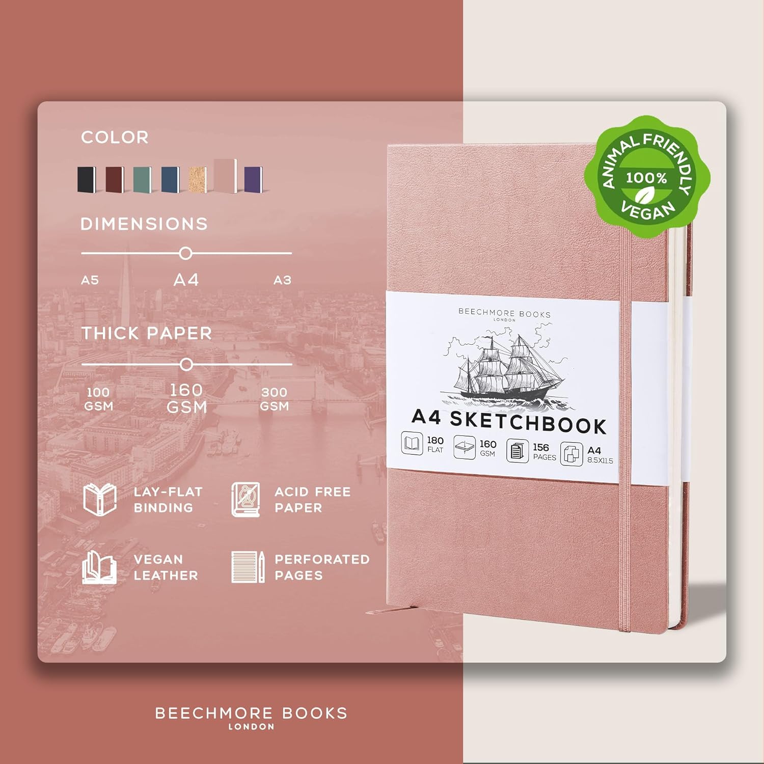 - Elegant & Durable Construction - Built to last with a robust vegan leather hardcover and thread-binding, this A4 large sketchbook combines timeless British-inspired design with lasting reliability for your artistic vision.
