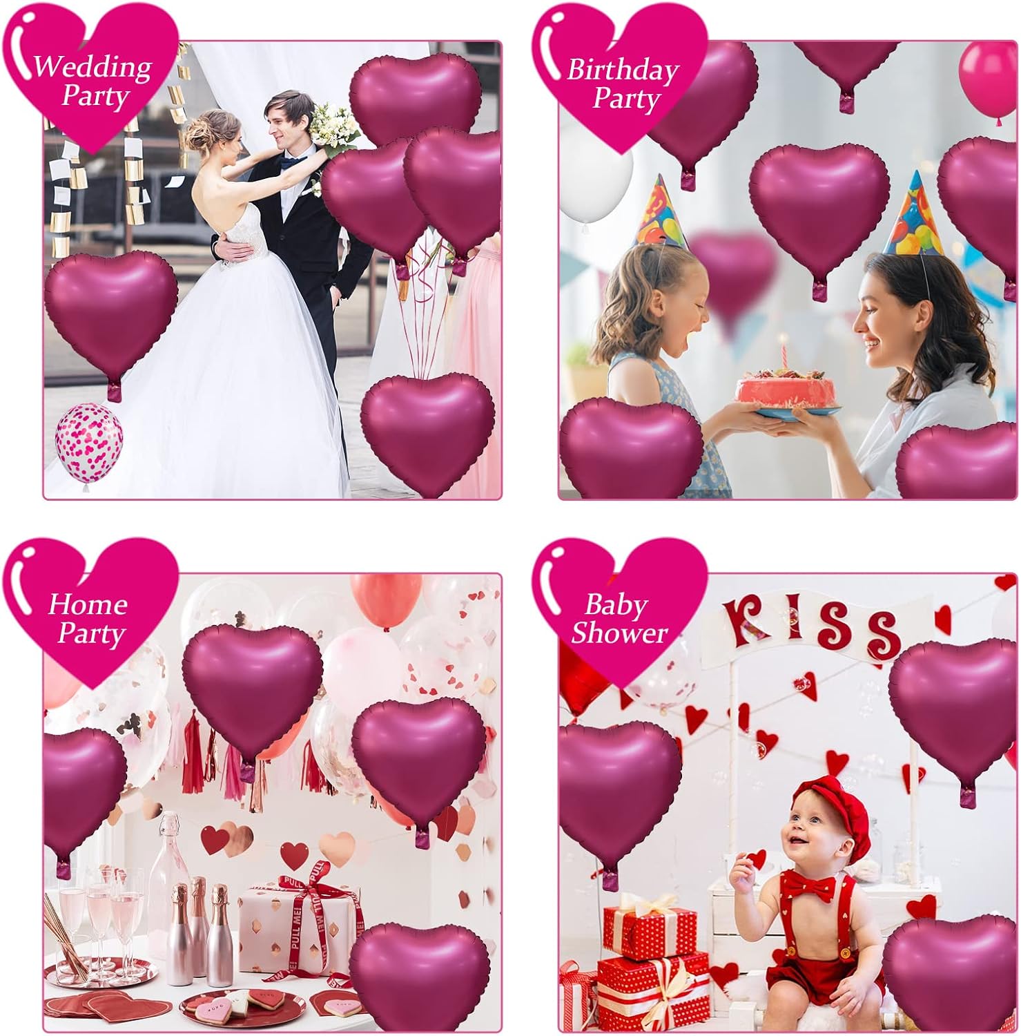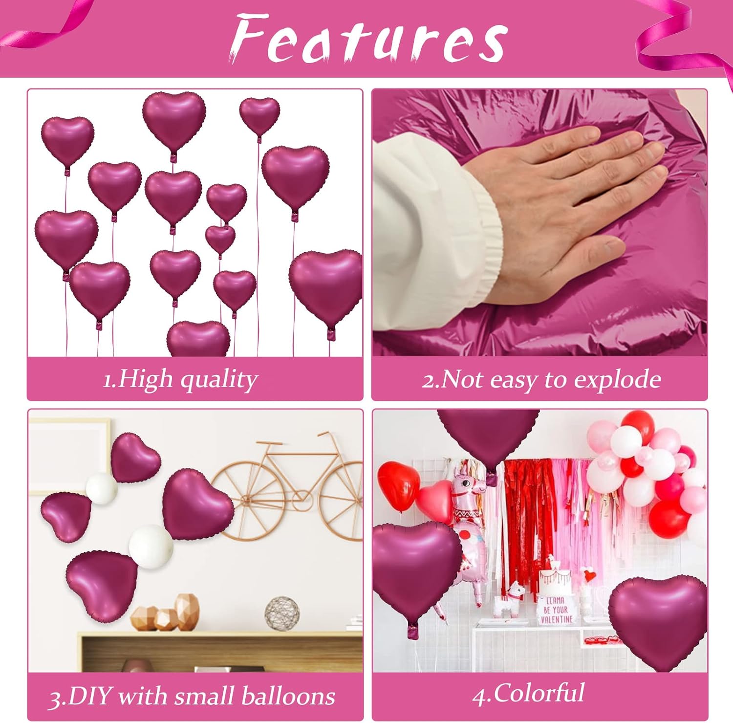 - ๐ HIGH QUALITY FOIL BALLOONS: The surface of the heart balloons is a metal matte surface. All materials of heart balloons are of high quality and good safety foil, which is very durable, harmless, not easy to break and last a long time, glossy, beautiful in shape. Our foil heart shape balloon set can create an exclusive sweet atmosphere for party.