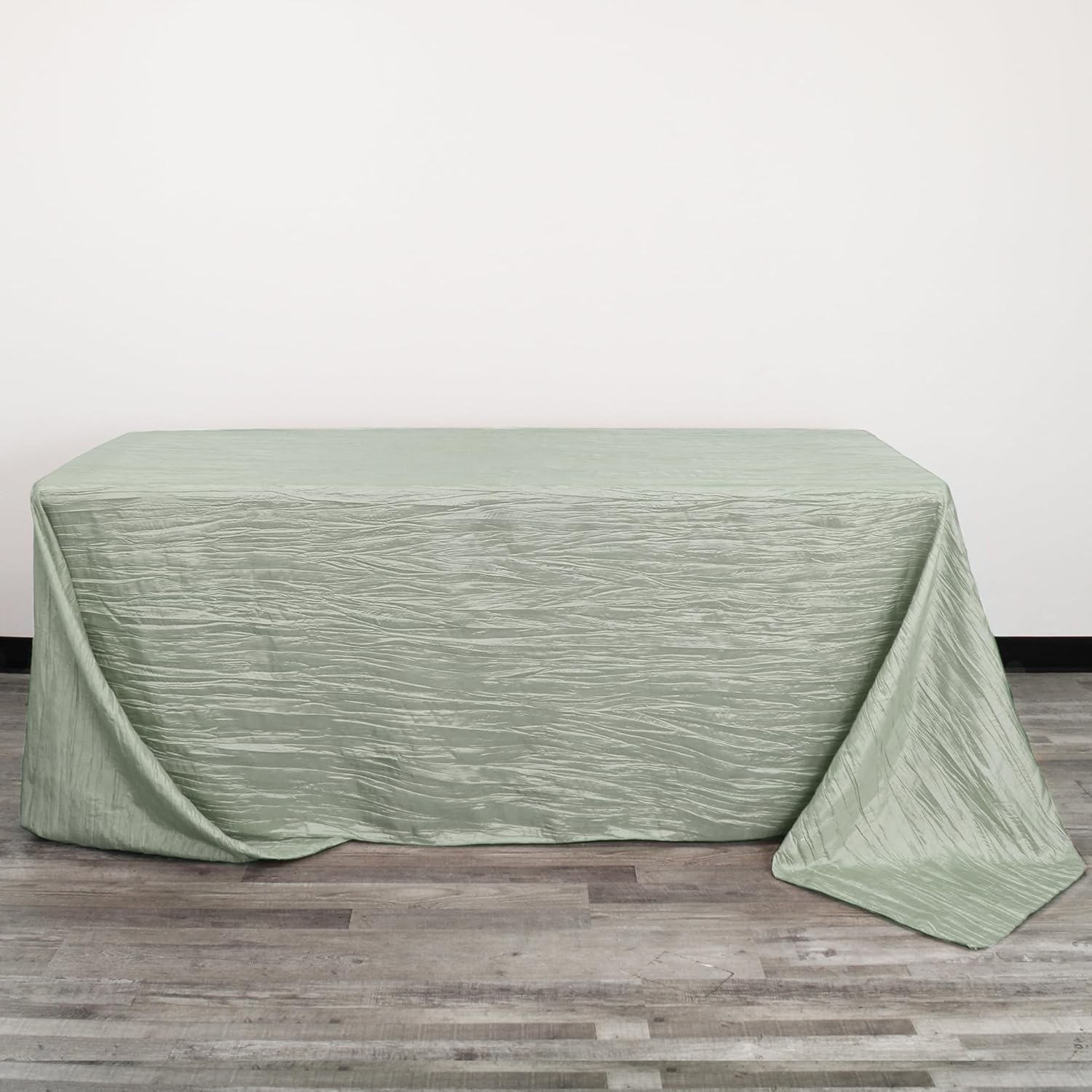 YOUR CHAIR COVERS - 90 x 156 inch Rectangular Crinkle Taffeta Tablecloth - Sage, Rectangle Table Linens for 8 ft Rectangular Tables, Wedding Crushed Table Cloth