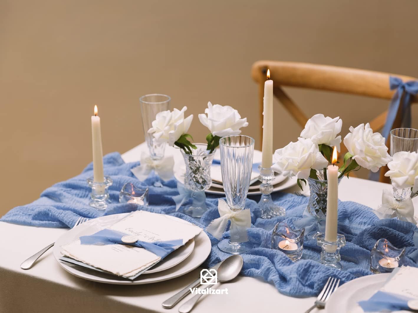 Vitalizart Blue Handmade Chiffon Silk Ribbon Fringe 1.5" x 21 Yd Dusty & Baby Blue Frayed Edges Ribbons for Wedding Invitations Bridal Bouquets Gifts Wrapping Crafts Holiday Party Decorations