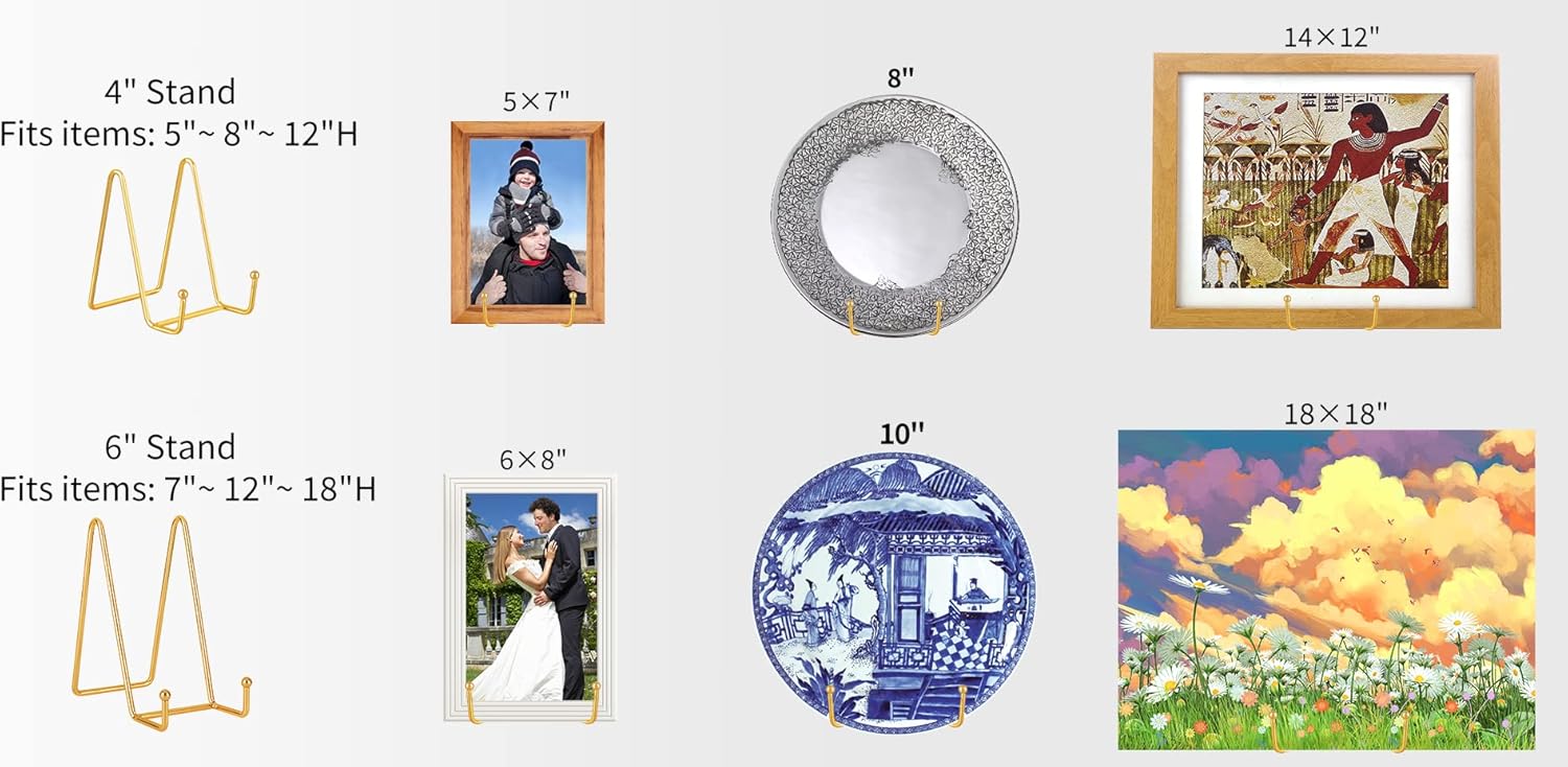 - 5 Pack Stands: The 5 pack plate holder set allows you to meet different needs with one purchase, and it is more cost-effective. You can use the display stand to place your photos, artwork, open books, mobile phones, tablets…and so on