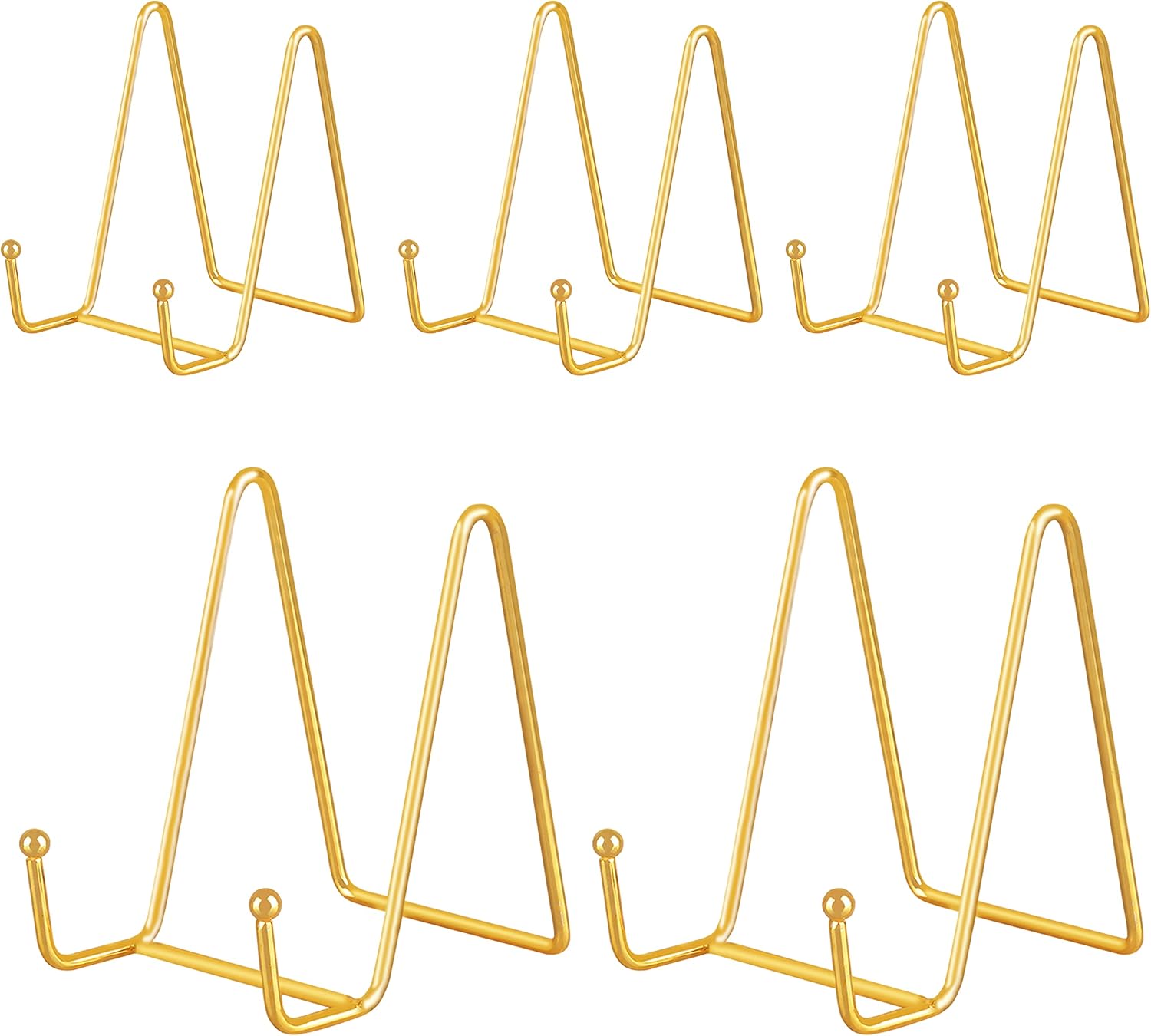 IBosins 5 Pack 4 Inch Plate Holder Display Stands, Metal Gold Frame Stand for Picture, Book, Photo Easel, Creation, Collectibles