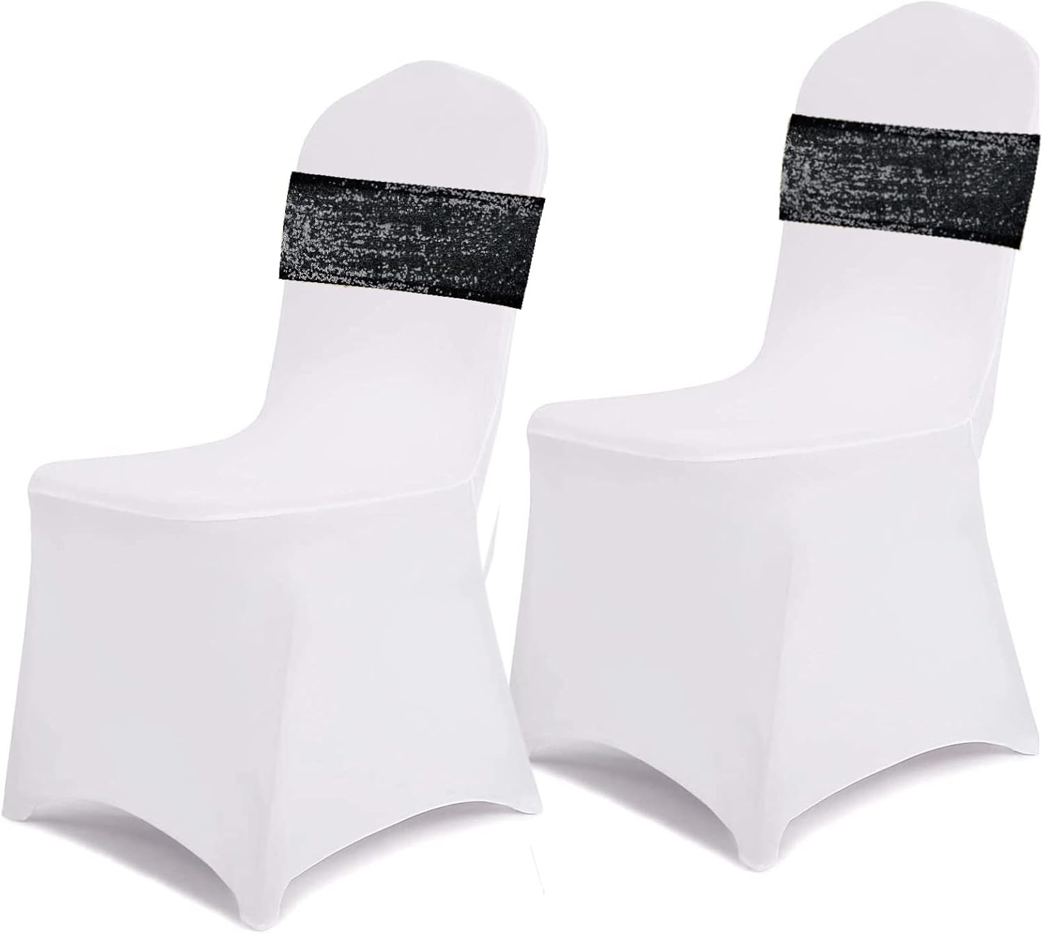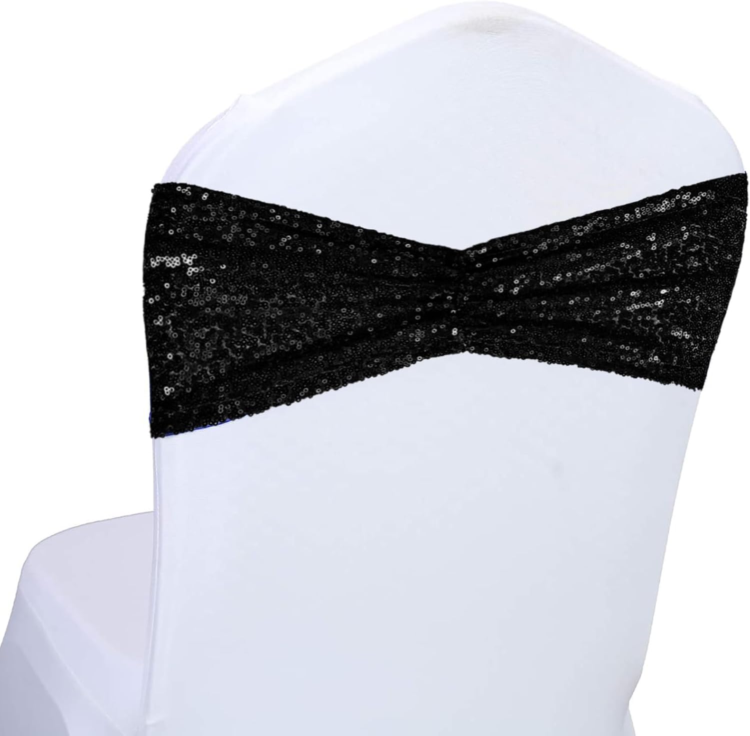 SquarePie Pack of 100 Chair Sashes Sparkly Black Sequin Bands for Wedding Party Banquet Home Decor