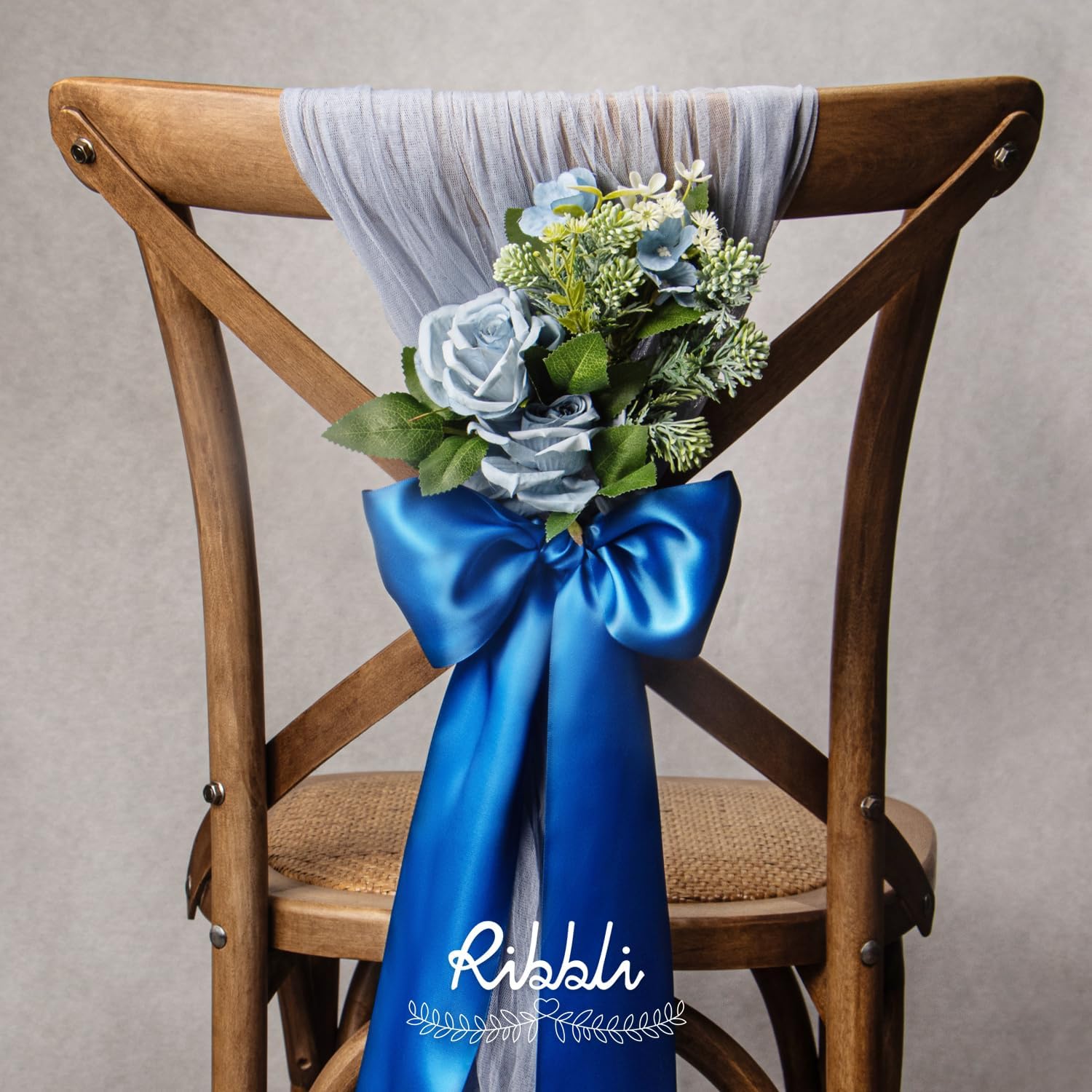 Ribbli Royal Blue Satin Ribbon 4 Inch Wide Blue Ribbon for Wedding Chair Sash Grand Opening Ceremony Big Bows Gift Wrapping Floral Crafts Cake Decor-Double Faced Satin Continuous 10 Yards