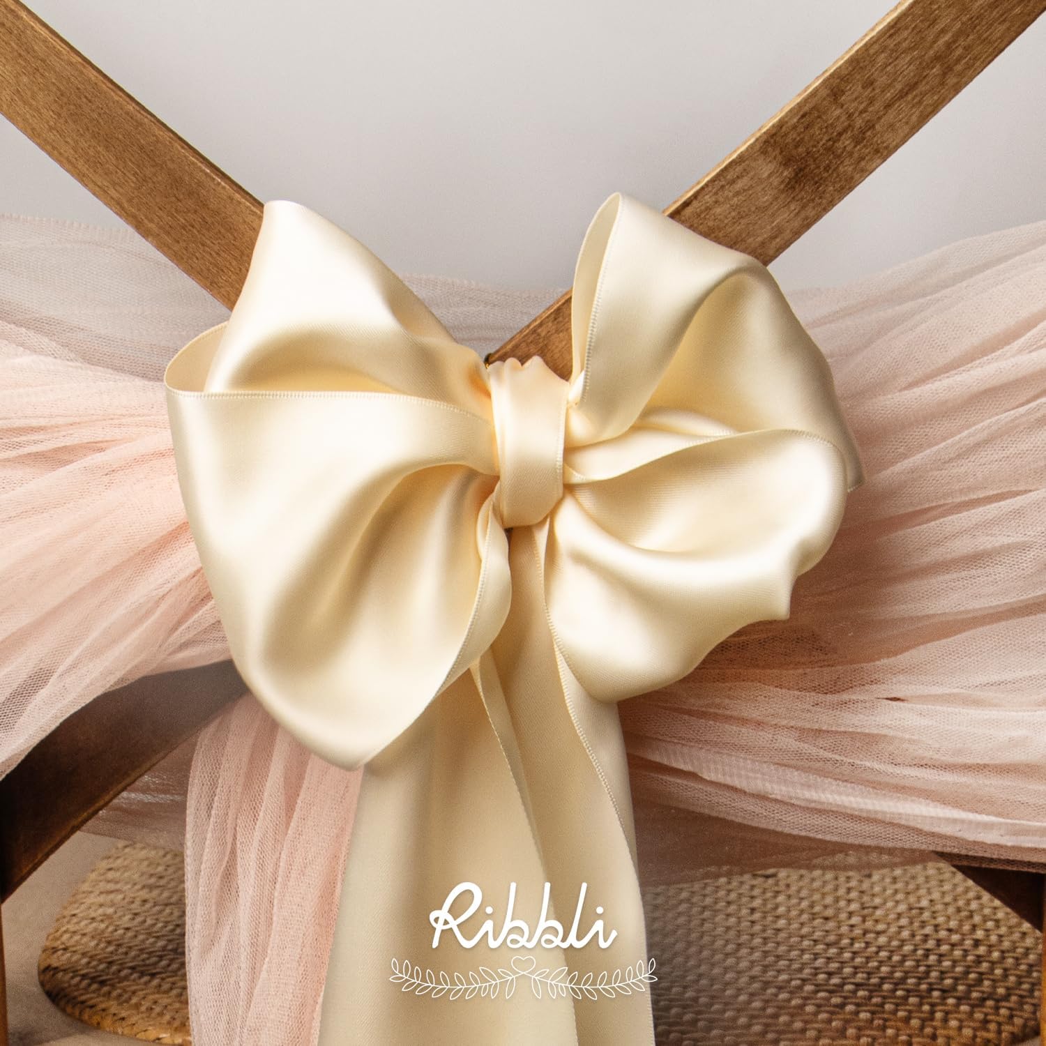 Ribbli Cream Satin Ribbon 4 Inch Wide Cream Ribbon for Wedding Chair Sash Grand Opening Ceremony Big Bows Gift Wrapping Floral Crafts Cake Decor-Double Faced Satin Continuous 10 Yards