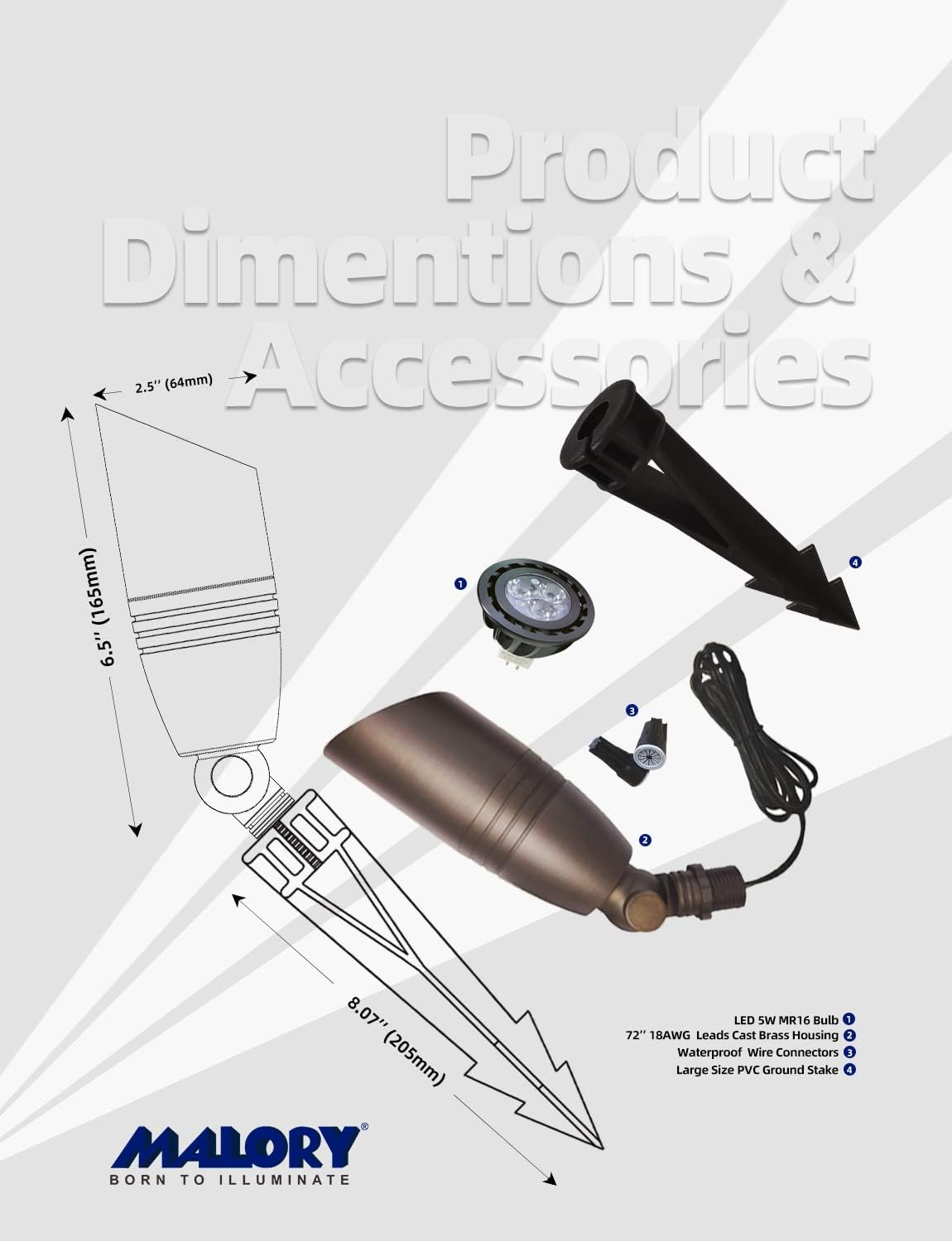 - BRASS LIGHT FIXTURE:MALORY landscape spotlight is constructed of die-cast brass for durability and beauty.Brass spot light doesn't corrode,more durable and reliable than aluminum and plastic fixtures,ideal for any uplighting application.Simple design structure for the light fixture make it looks beautiful yet unobtrusive in any landscape,suitable for decorating most houses and yards.