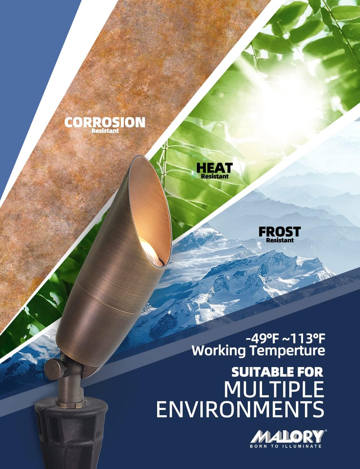 - LIFETIME WARRANTY:MALORY landscape lighting are built to the highest standards of construction and performance, we extends an industry-best lifetime warranty on its brass fixtures and 50,000 hrs for the LED bulbs.Please contact us if you have any issue, we will offer top rated customer service for you.