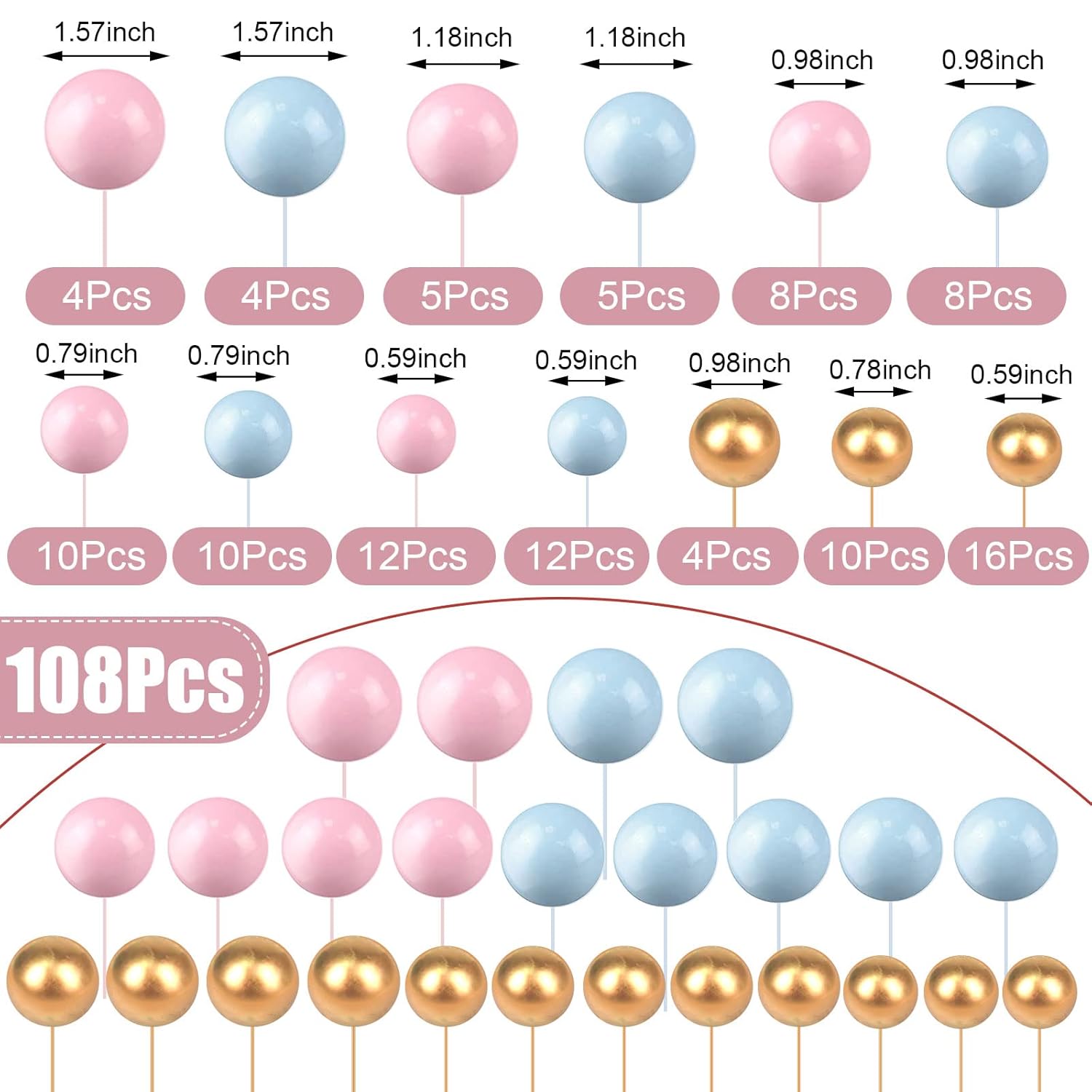 - Total Quantity: Note: not edible,you will get 108 pieces cake balls decorations, which are very bright and can be applied with other decorations to make your cake more beautiful; Sufficient quantity can not only meet your needs, but also can be given as gifts to others