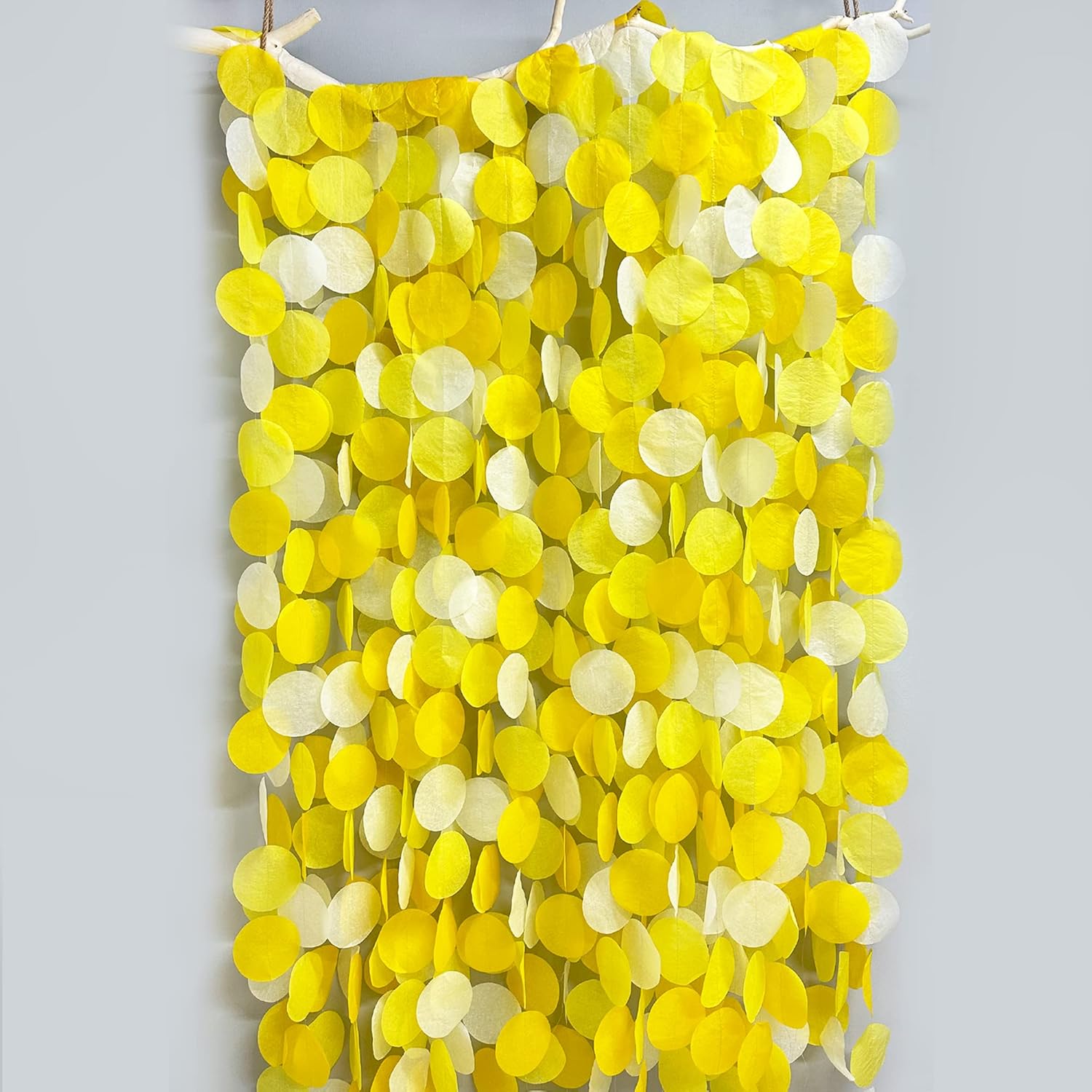 - ⚪ENVIRONMENTAL MATERIAL-Our ombre yellow big circle dot streamer garland are made of high quality tissue paper,carefully hand-made and machine-sewn together with thread.durable and reusable.Unroll & unwrap the tissue paper garland carefully. Due to delicate nature of thread, may tangle.