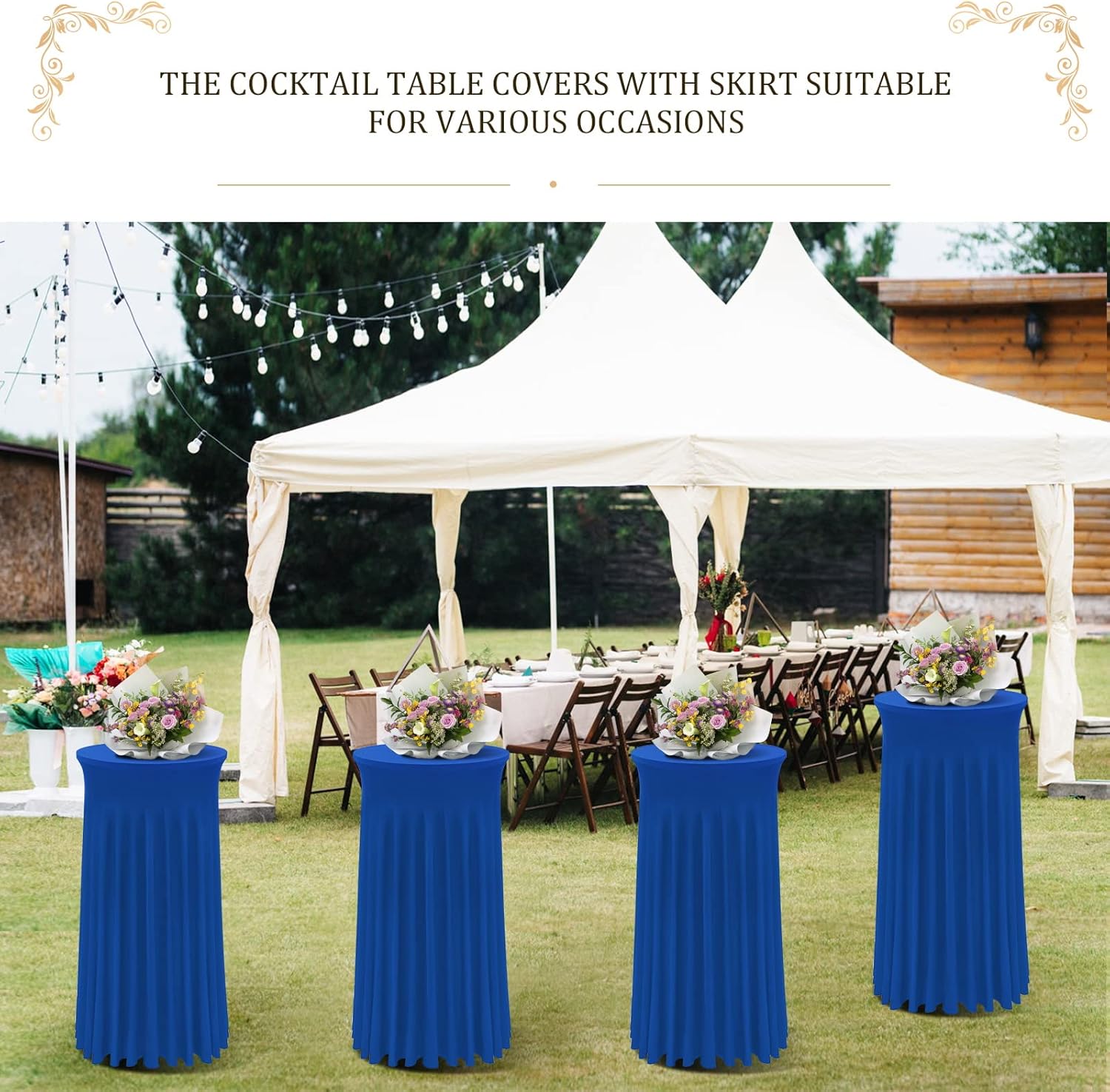 Cocktail Table Covers - 2 Pack 24"x 43" Royal Blue Cocktail Table Tablecloth with Natural Wavy Round Skirt for Bar Wedding Party Banquet