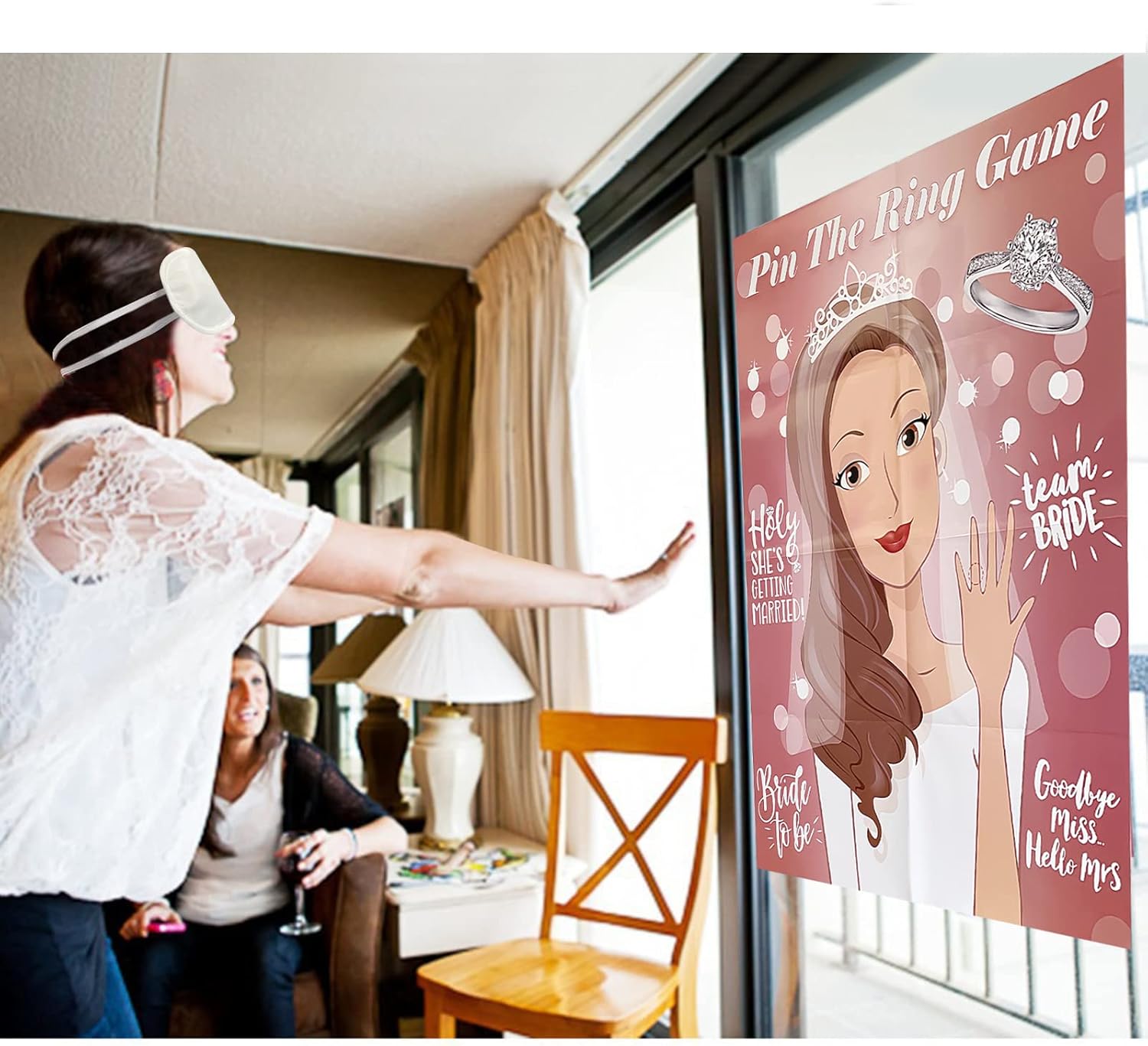 - PIN THE RING ON THE BRIDE GAME - Ring has numbers that can help you track who the team members are. It is an ideal choice for a bachelorette party, bridal shower, wedding shower and engagement party.