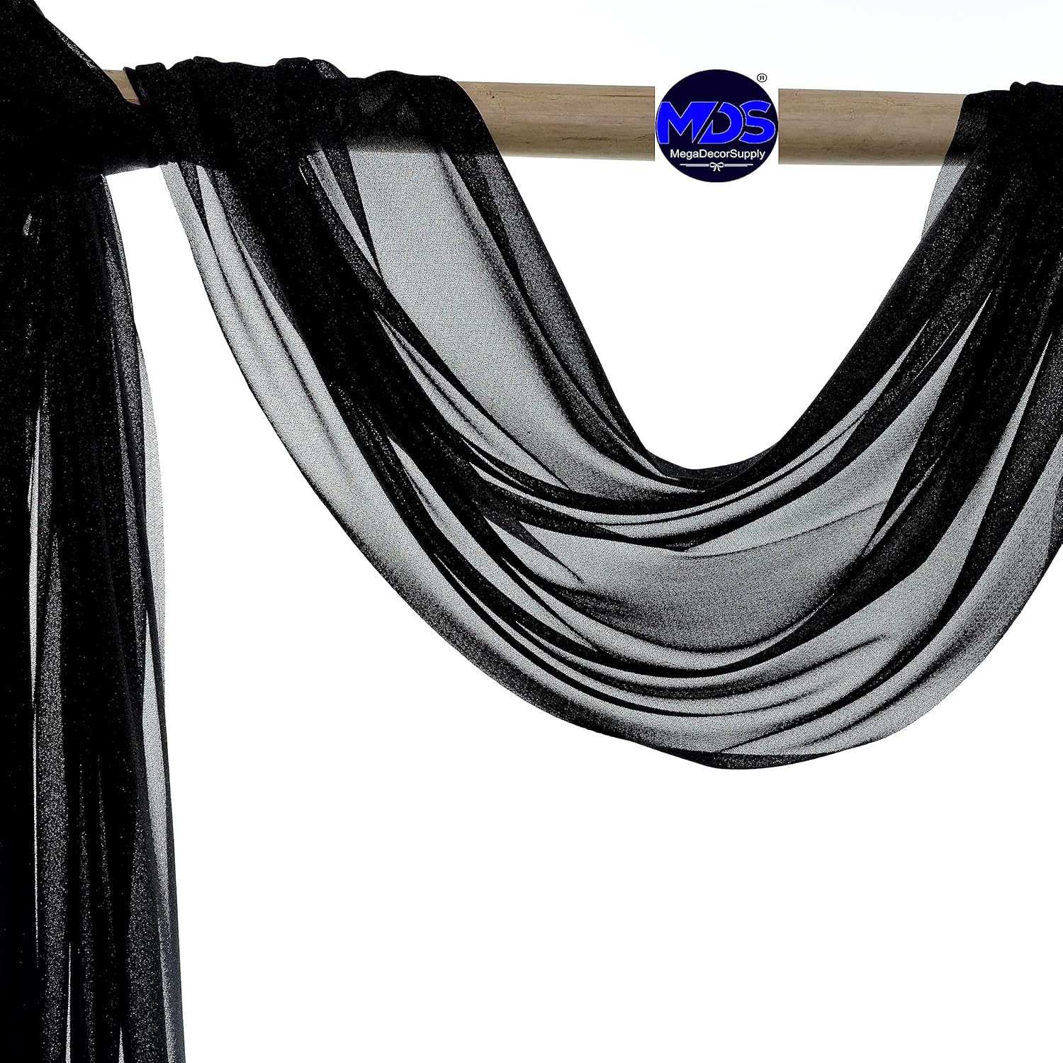 MDS Halloween Chiffon Draping Fabric - 1 Panel, 30" Wide x 20ft Long - Sheer Spooky Arbor & Canopy Drapery for Haunted House Backdrops, Party Ceilings, DIY Costumes & Themed Events - Black