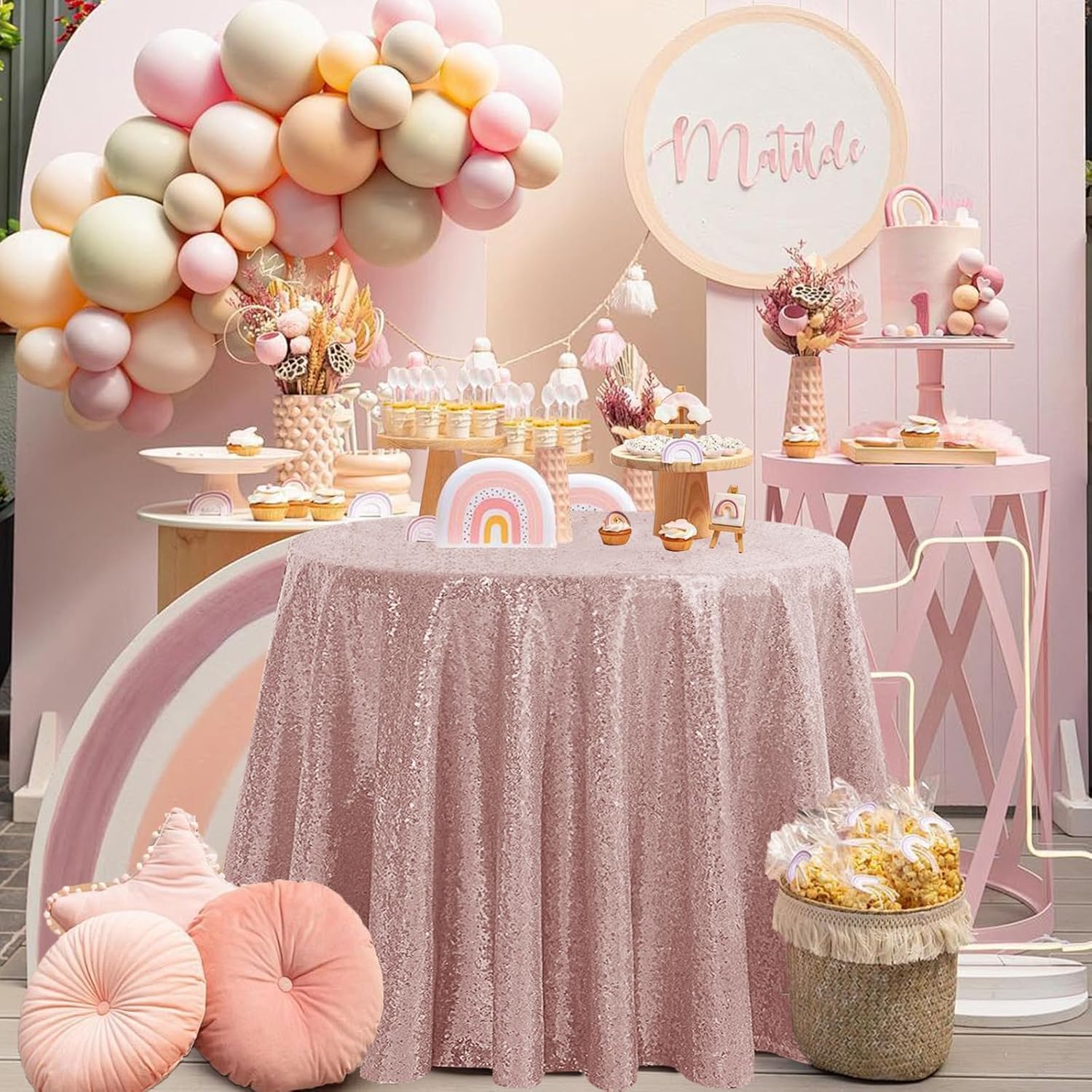 - Package Include: Your package will include 1 round rose gold tablecloth measuring 50 W by 50 L inch. These sparkly table tablecloths are ideal for wedding, event table decorations for the reception.