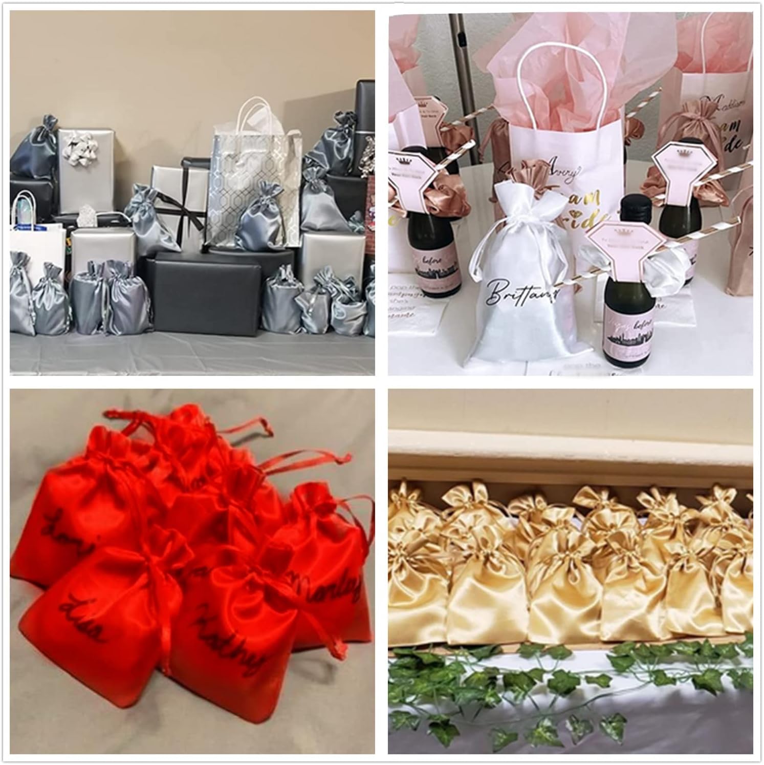 - ๐ Multipurpose: These silk satin gift bags are great for any number of occasions, Perfect to use as baby shower gift bags, wedding favor bags, Valentine's Day gift bags, candy bags,Christmas gift bags, soap bags, bath bomb bags, jewelry bags even on a ordinary special day trying to make your gift bag looks amazing. Also you can use them as dice bags, tarot bags or tarot pouches.
