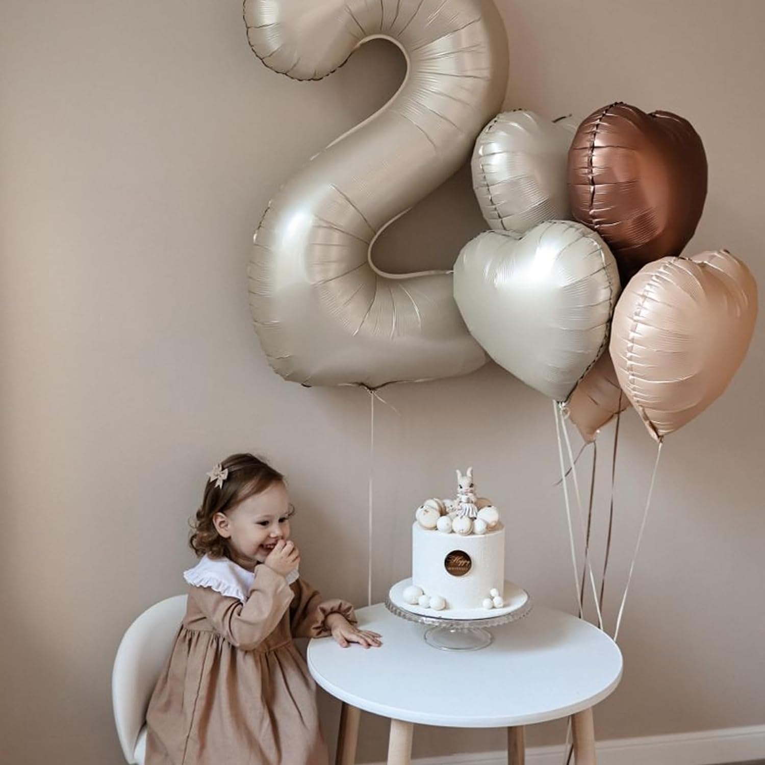 - ๐ Easy To Use: These beige brown heart shaped birthday balloons can be filled with air or helium (inflate to 85%-90%, to prevent it from becoming too large and exploding). The valve seals automatically when inflated, and the gas inside can be emptied with a plastic straw, making them reusable. The set also comes with 10 meters of ribbon, making it easy to decorate your room for your children and spouse.