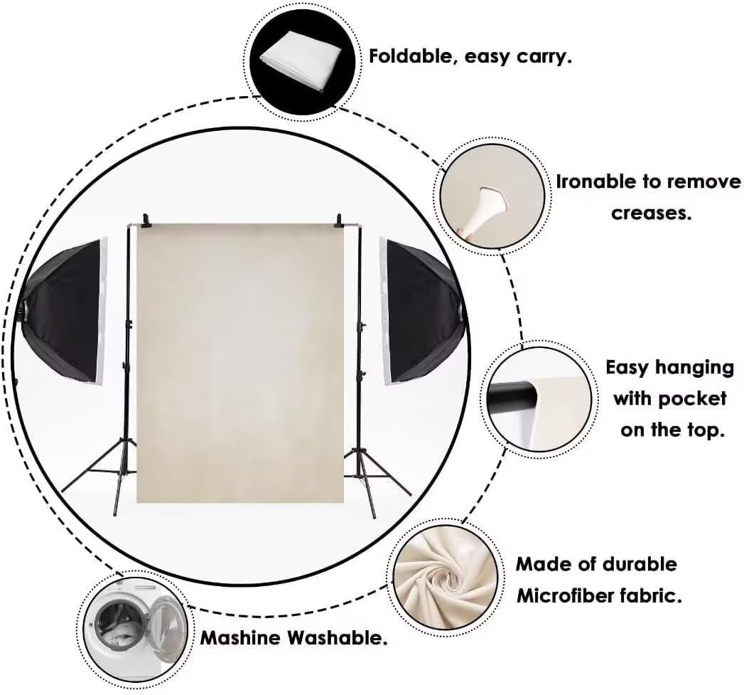 - Size:5x7ft/1.5m(W)x2.2m(H),items are sent by folding, and easy to carry (The backdrop can be customized).