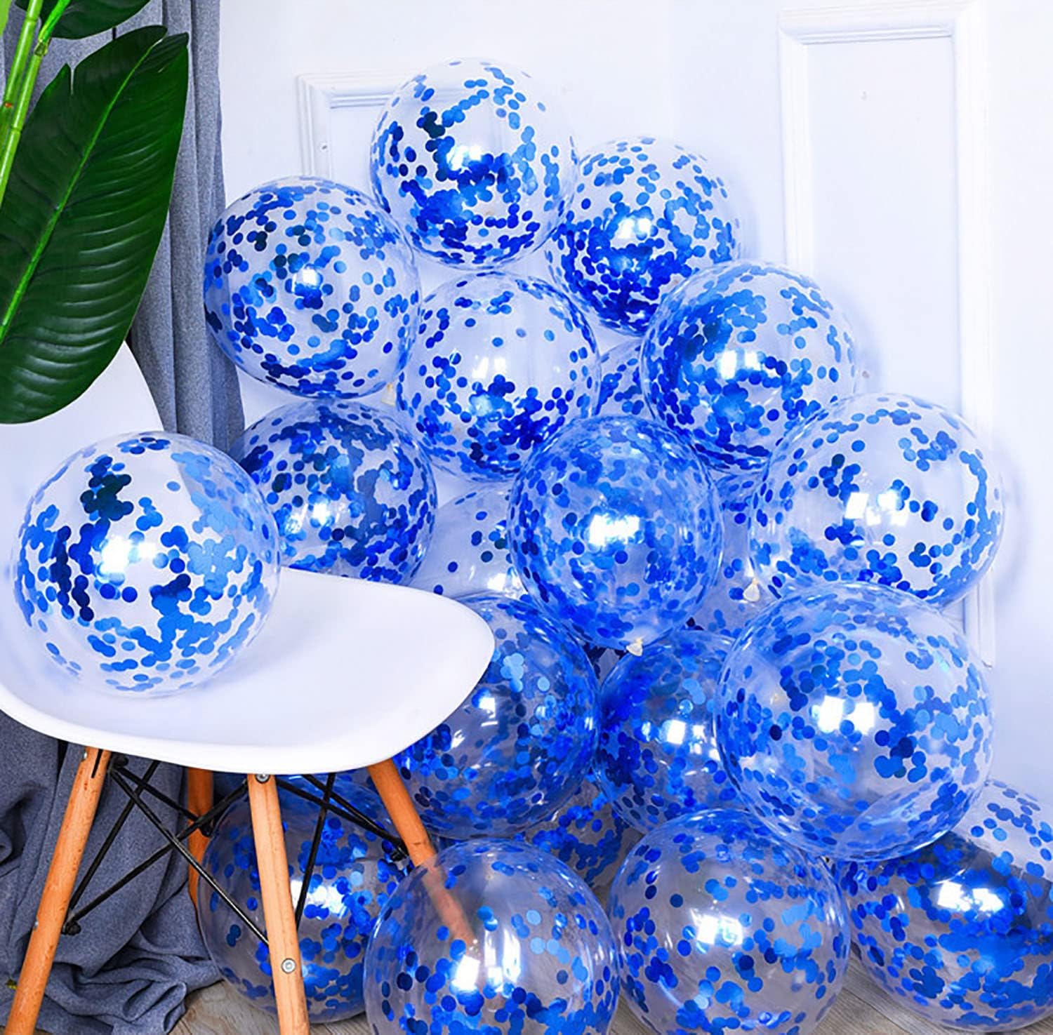 50pcs Blue Confetti Balloons,12 inch Latex Balloon with Blue Confetti Inside for Birthday Family Party Wedding Party Baby Shower Decoration Supplies
