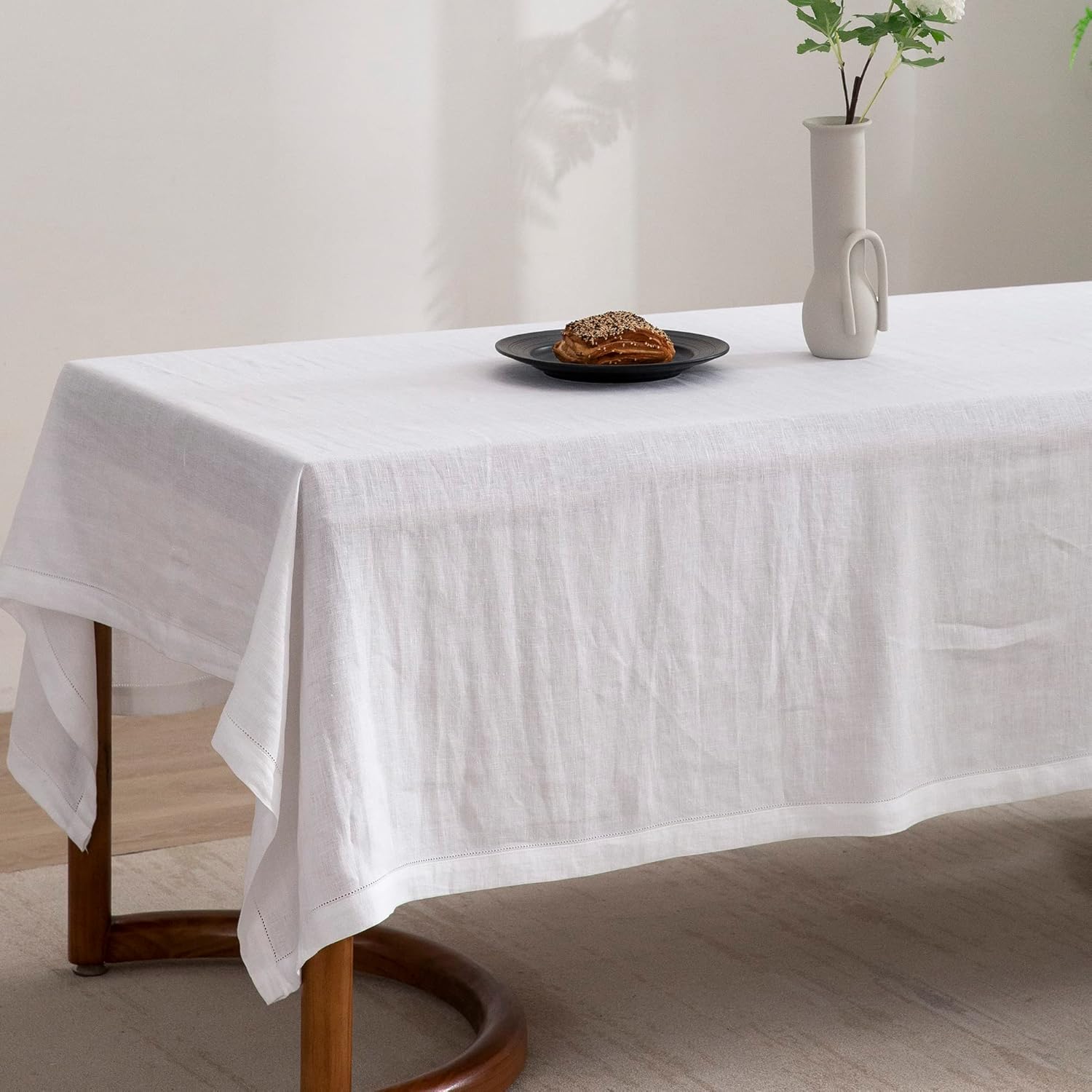 EVERLY 100% Pure Linen Rectangle Tablecloths 60x144Inches for Dining, Buffet Parties, Picnic,Events, Weddings and Restaurants, Decorative Halloween, Thanksgiving Machine Washable Tablecloths-White
