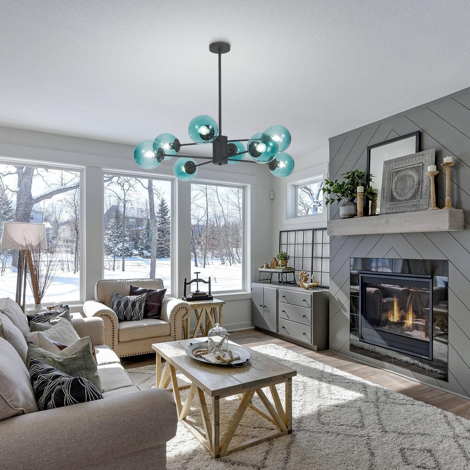 - 【Modern 8-Light Globes Sputnik Sputnik】The mid century modern chandelier is designed with matte black lamp body and straight lamp arm in different direction, become a playful touch in its formal symmetry, antique rustic retro look and fits the modern home decoration. It is definitely the best choice for your home lighting and decoration.