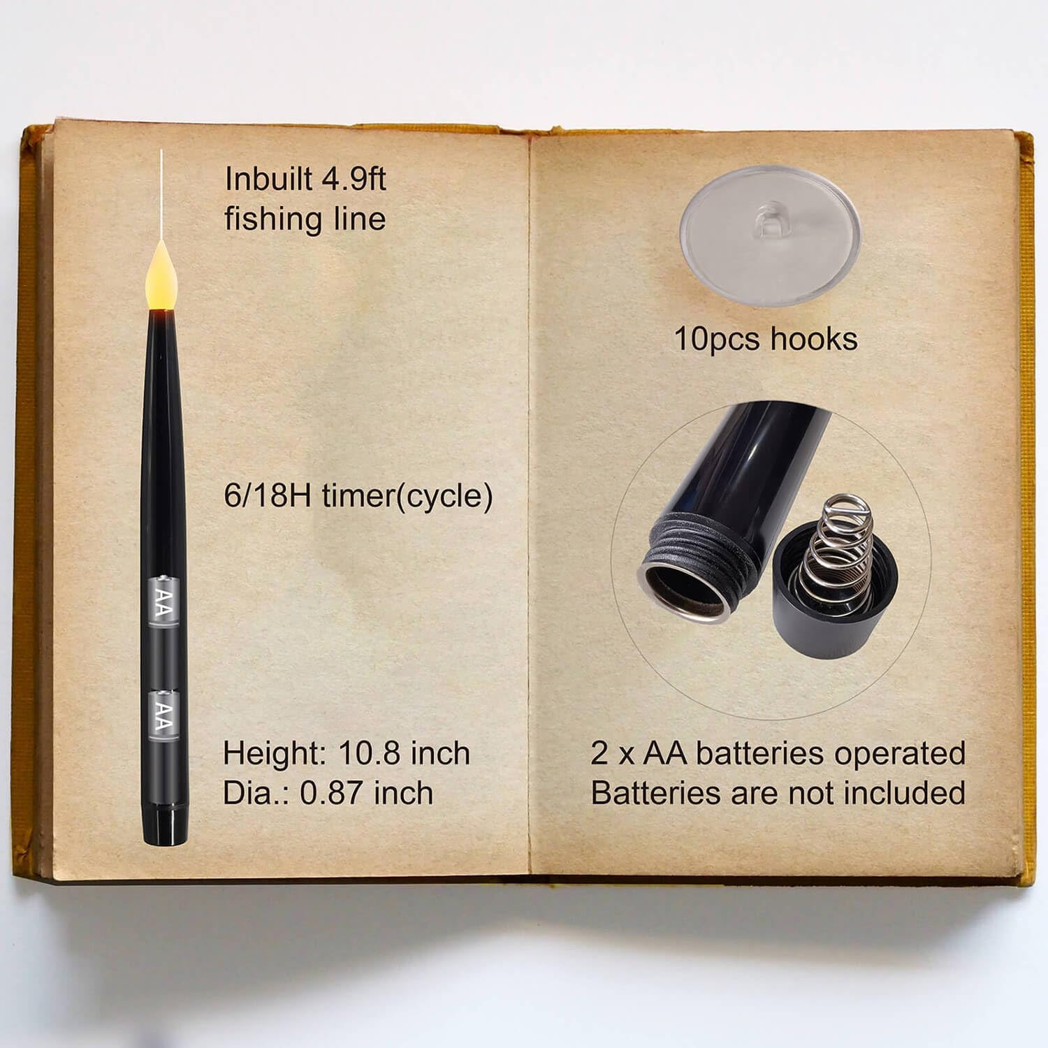 - Super easy to hang: 4.9ft long clear fishing line (barely visible) pre-attached on the tip of each candle, can hang down straight instead of being at an angle, and it's long enough to accommodate whatever your length needs are. You can hang candles on the ceiling with hook or fix these electric candles on the window, wall for Halloween decorations