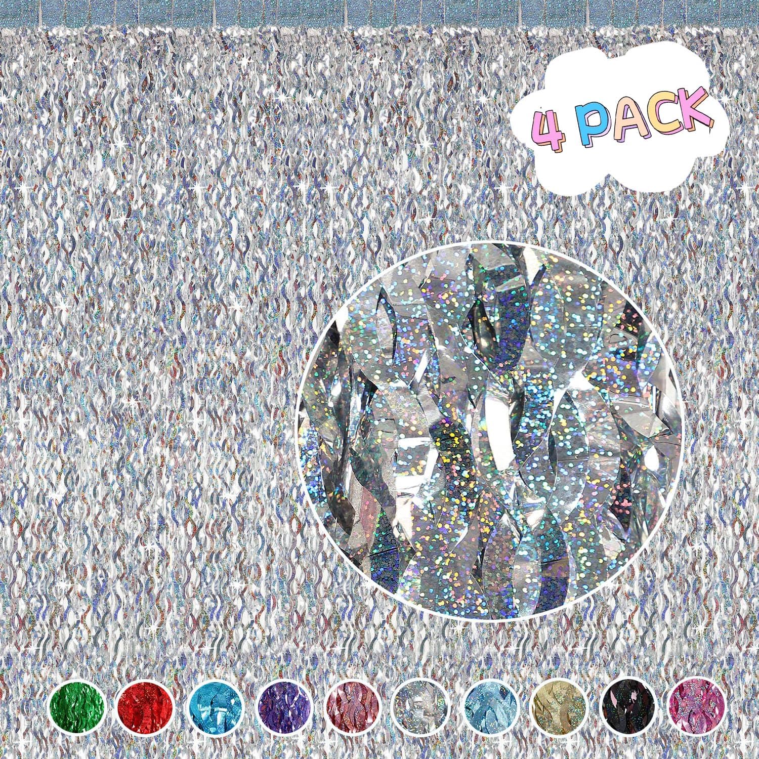 - Packing Included:4 packs tinsel foil fringe curtains party photo backdrop , Each pack curtains size is 3.3ft x 6.6ft, enough length for decorate your party