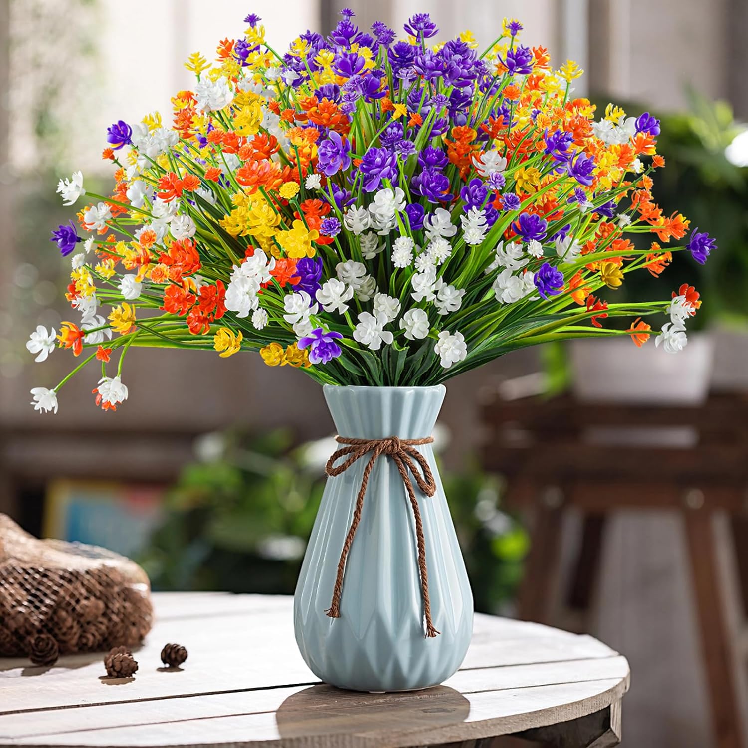 AmyHomie 20 Bundles Artificial Flowers for Outdoor UV Resistant Faux Flowers No Fade Fake Plastic Plants Garden Porch Window Box Decorating(Mix Color)