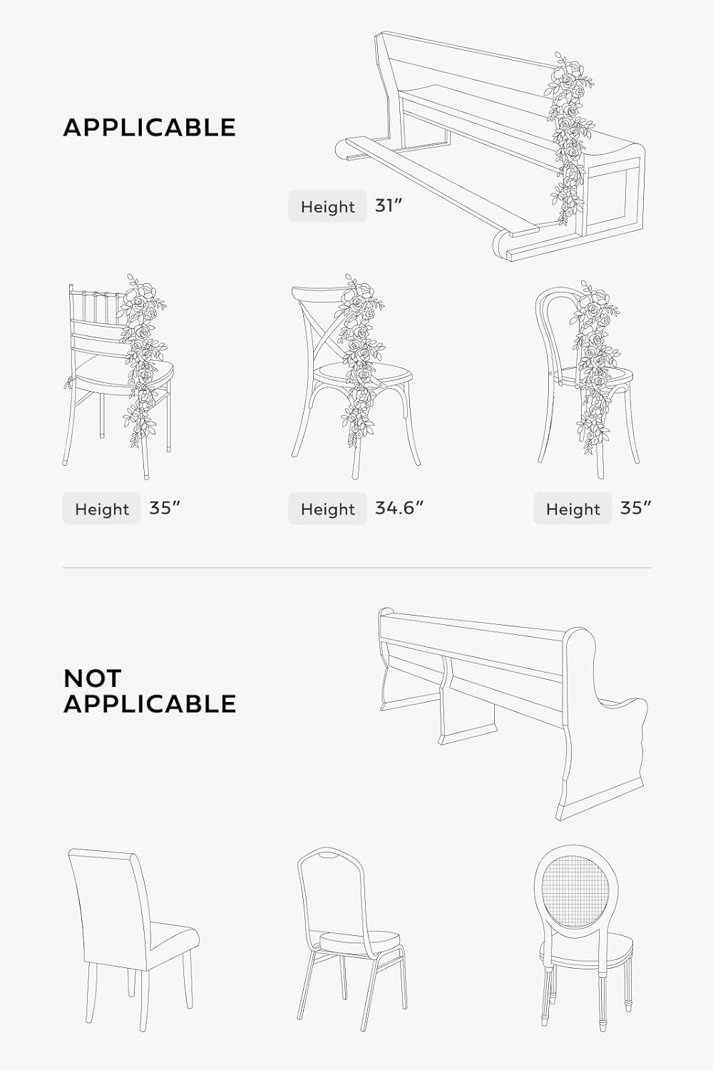 - EASY TO USE: Each aisle decoration comes with a ribbon already attached. Simply tie it to the chairs, benches, stairs, or any other surface you want to decorate. Please follow the video to install. After the ceremony is over, it only takes a few minutes to remove and transfer them.