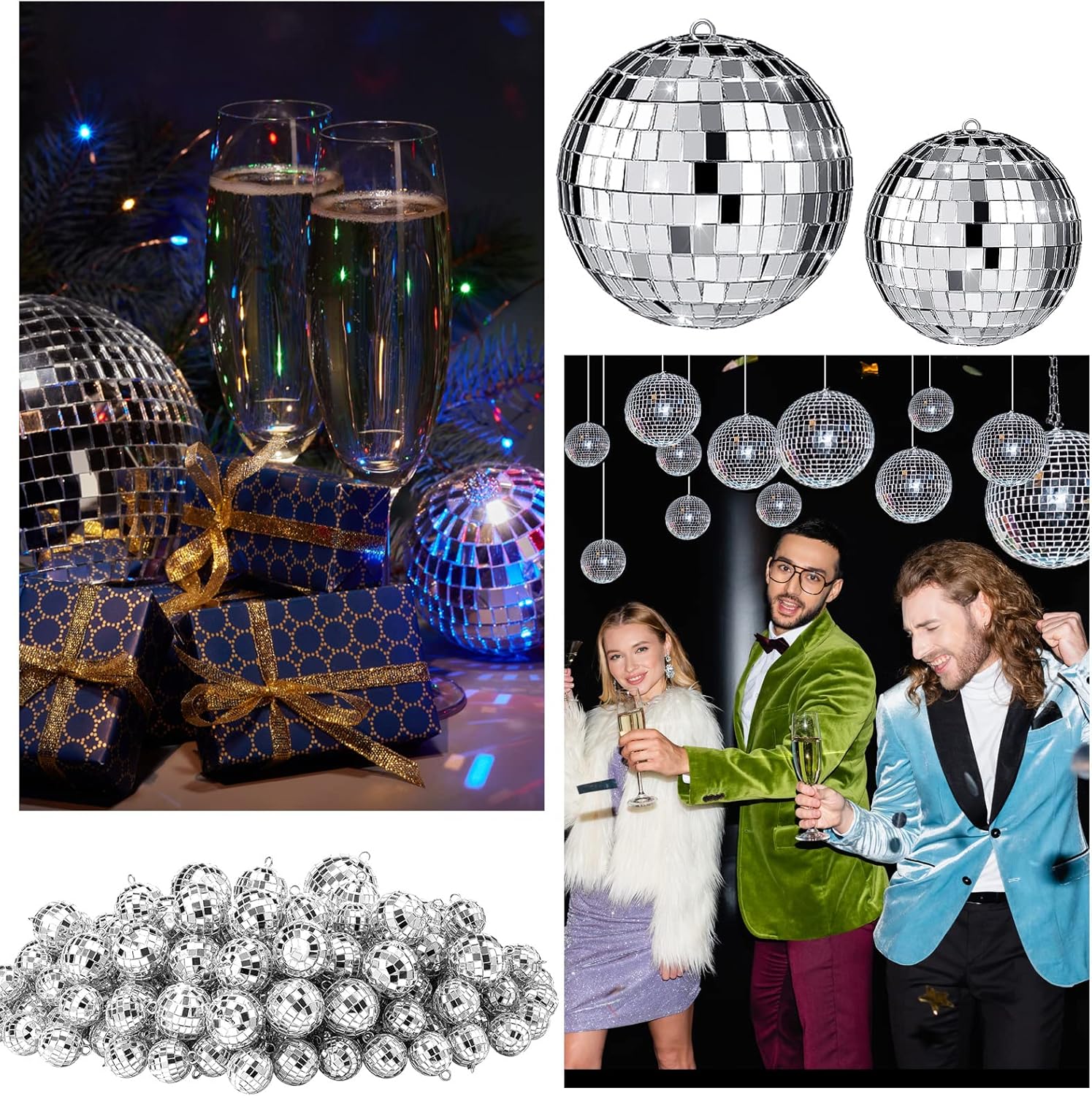 Funtery 100 Pcs Mirror Disco Balls Bulk Assorted Silver Hanging Disco Ball Decor for Home Wedding Birthday Dance Music 70 S Theme Party Christmas Tree Ornaments(1.2'', 2'', 3.2'', 4'')