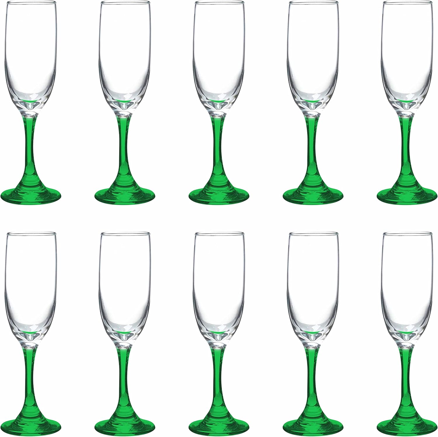 DISCOUNT PROMOS Premiere Champagne Flutes 6.25 oz. Set of 10, Bulk Pack - Elegant Drinkware for Weddings, Events, & Promotional Gifts - Green