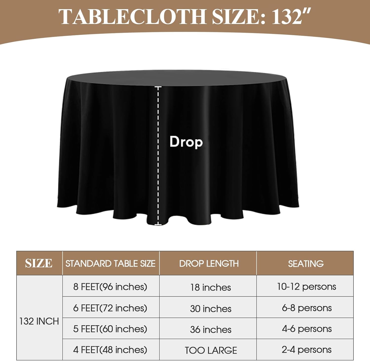 - Suitable Size: This polyester round tablecloth has multiple sizes to choose from, 90, 108, 120, 132 inches, which can meet the needs of tables of different sizes. In order to buy a tablecloth that is more suitable for your table, please measure the actual size of your table before purchasing and refer to our size chart