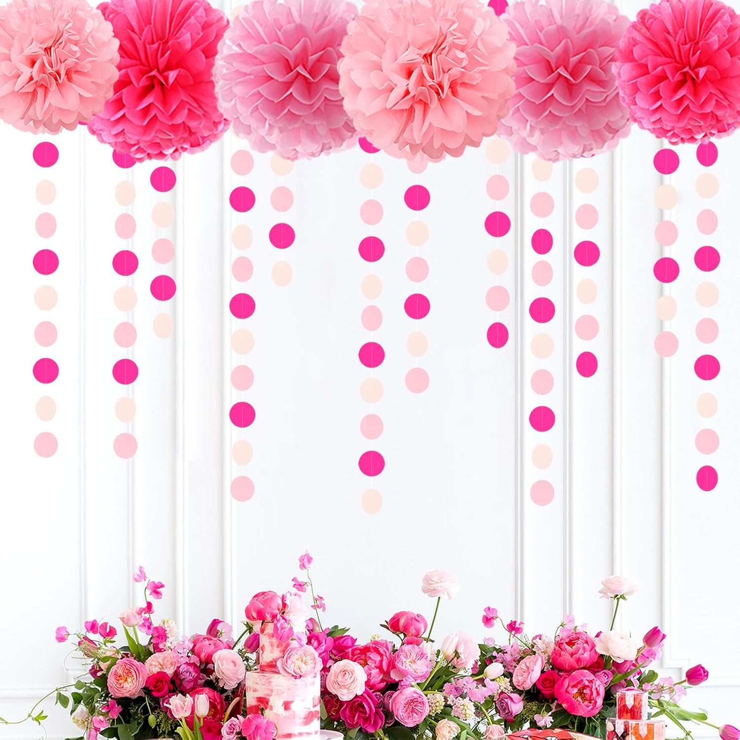 Hot-Pink Party-Decorations Paper-Garland Streamers Banner - 52Ft Girl Birthday Flamingo Baby Shower Engagement Wedding Bachelorette Hanging Decor Ouruola