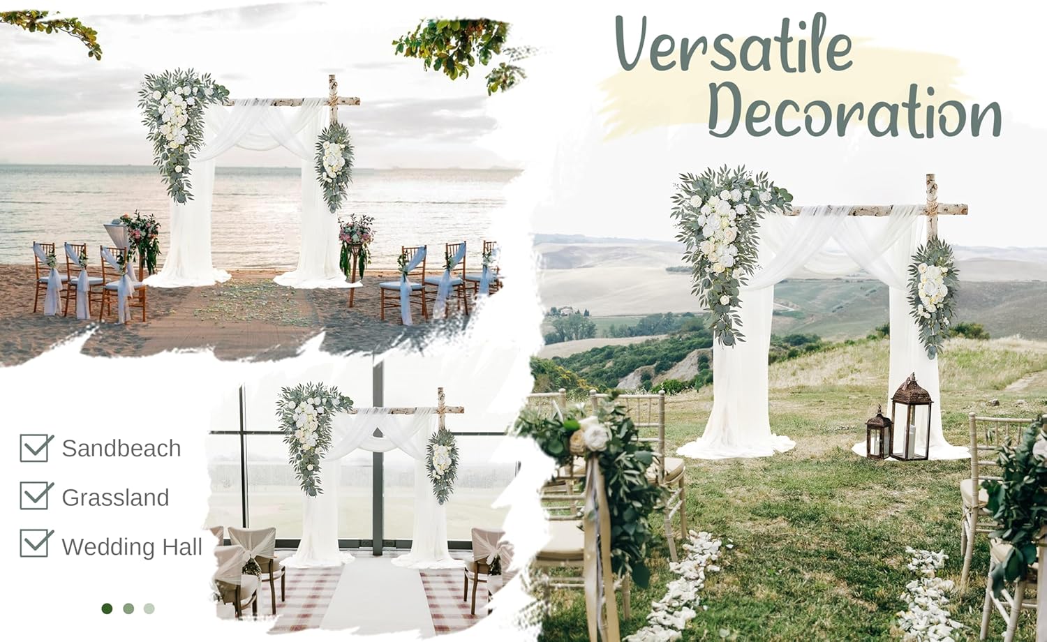 Wedding Arch Flowers with Drapes Kit (Pack of 4) - 2pcs Artificial Ivory & White Deluxe Swag with 2pcs Sheer Drapes for Wedding Ceremony Arbor Reception Backdrop Rose Floral Decoration