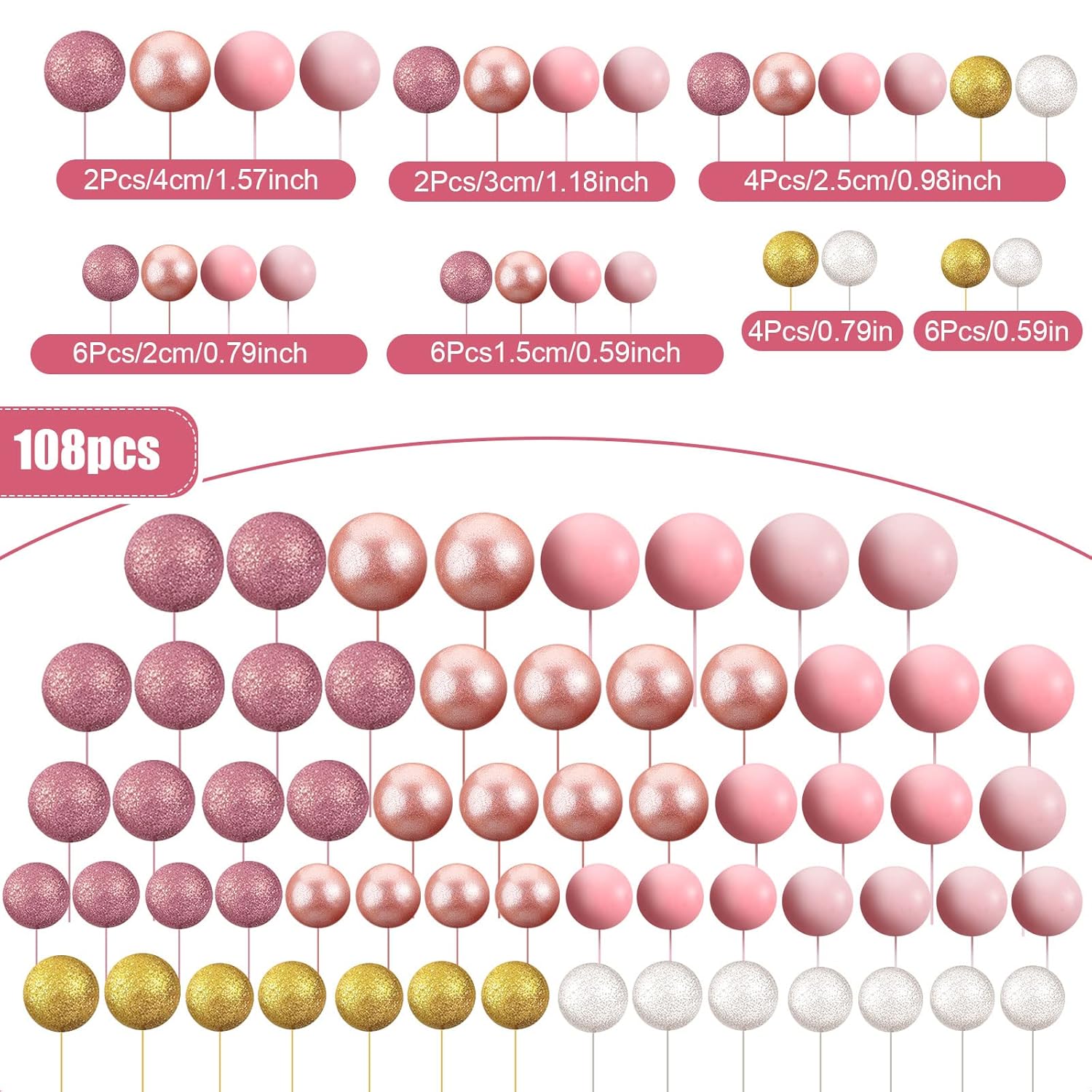 - Total Quantity: Note: not edible,you will get 108 pieces cake balls decorations, which are very bright and can be applied with other decorations to make your cake more beautiful; Sufficient quantity can not only meet your needs, but also can be given as gifts to others