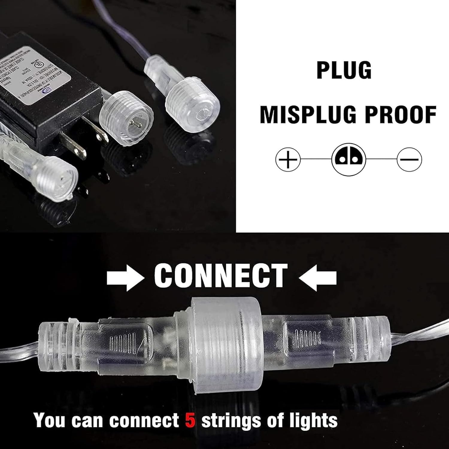 - 【IP65 WATERPROOF】 The Christmas lights has super high IP65 Waterproof leavel, suitable for outdoor using, no worry about the rain, snow or other bad weather.The outdoor lights has UL certified, equipped with the transformer, the string light will work on 7V low voltage which is lower than human body safe voltage.