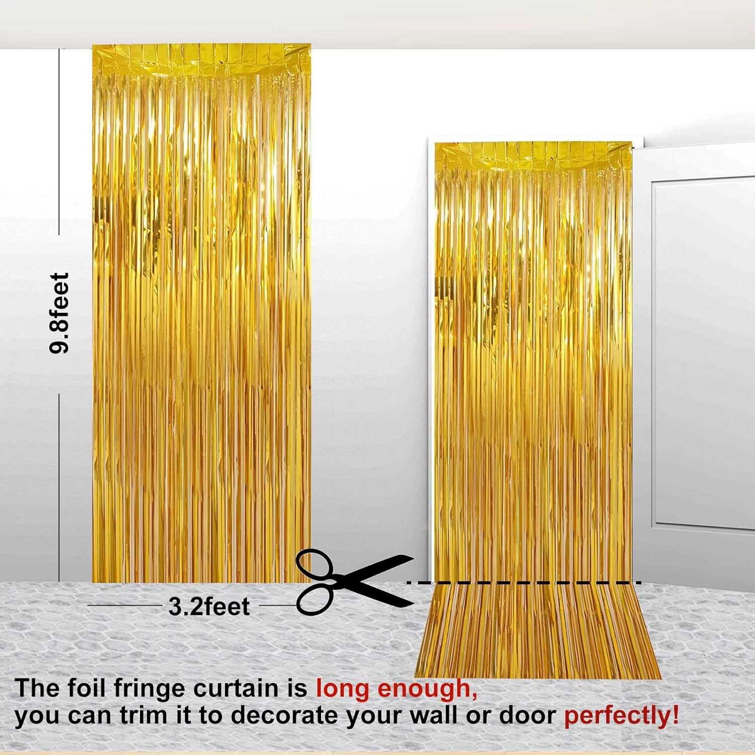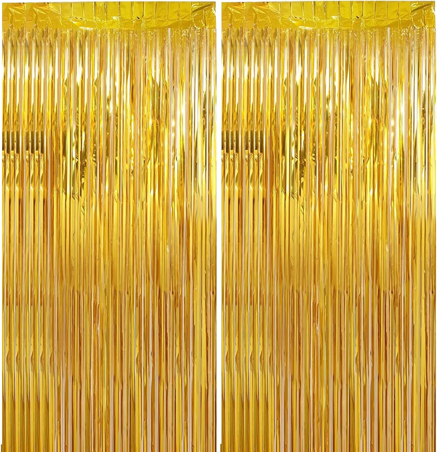 2 Pack 3.28 ft x 6.56 ft Golden Tinsel Curtain Party Backdrop Decorations, Metallic Foil Fringe Backdrop Door for Halloween, Christmas, Birthday Graduat