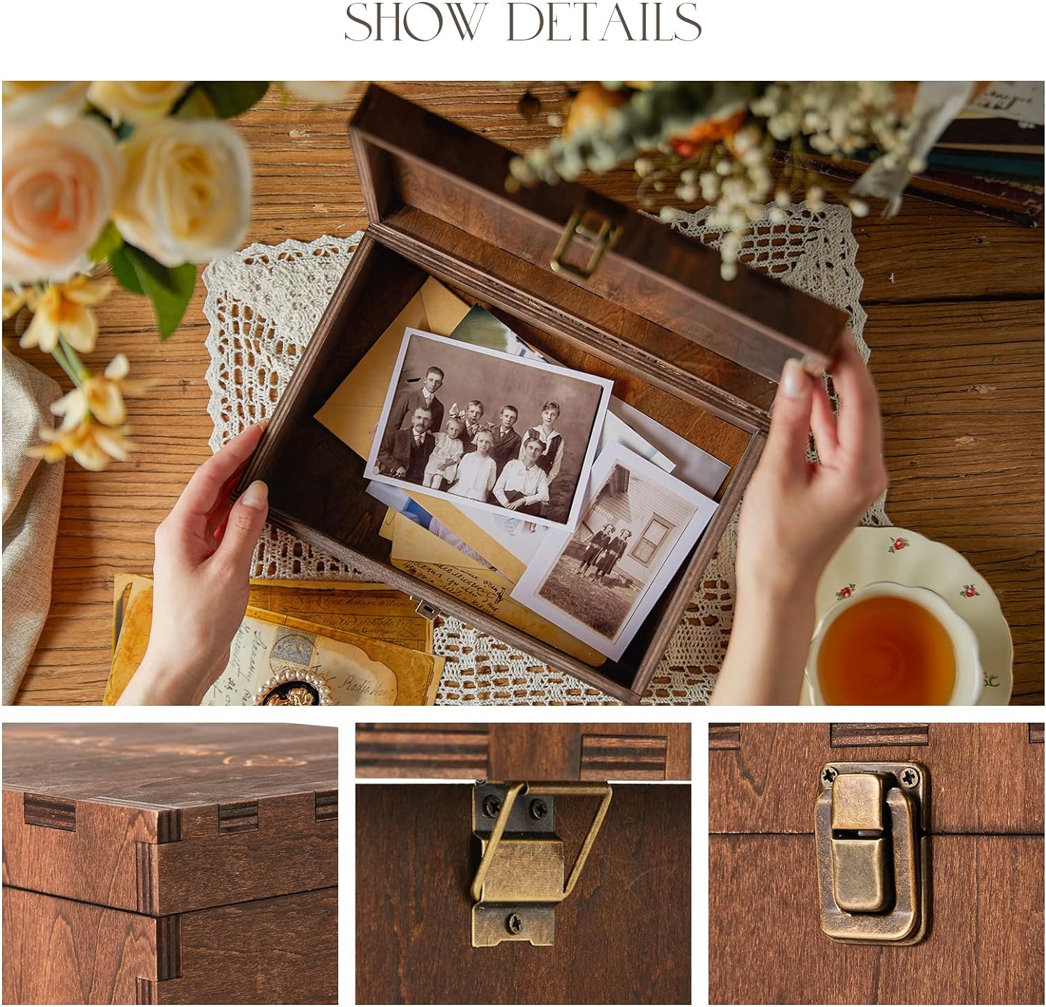 - Vintage Design: Engraved patterns on the outside lid, a testament to your shared journey. Decorated with dark brown PU leather and rivet, vintage and novelty, a sturdy hinged lock and lid for security. Our beautifully memory box is a sweet way to share your love