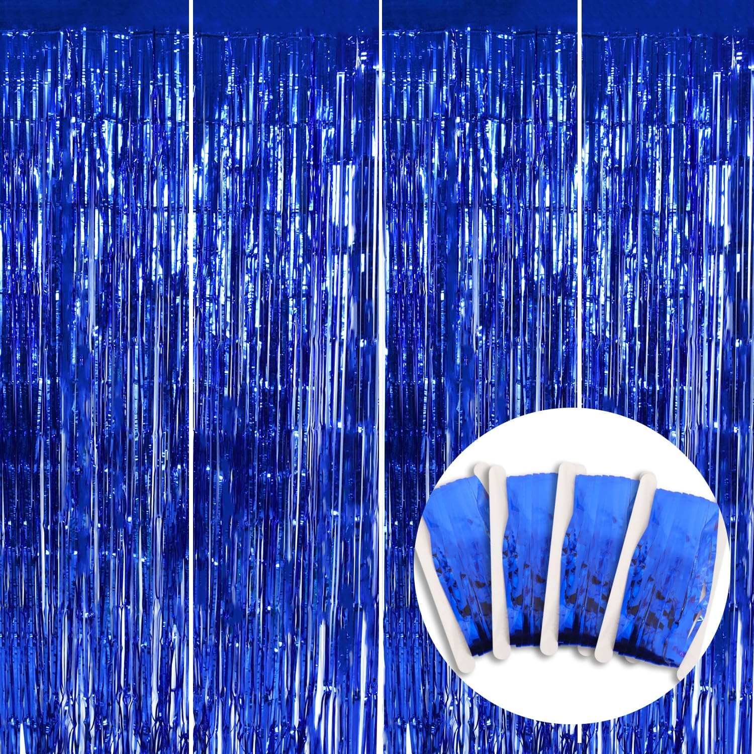 BEISHIDA 4 Pcs Blue Door Streamers Tinsel Curtain Party Backdrop Fringe Foil Wall Background for Birthday Halloween Christmas Wedding Boys Babyshower Party Decoration(3.28 ft x 6.56 ft)