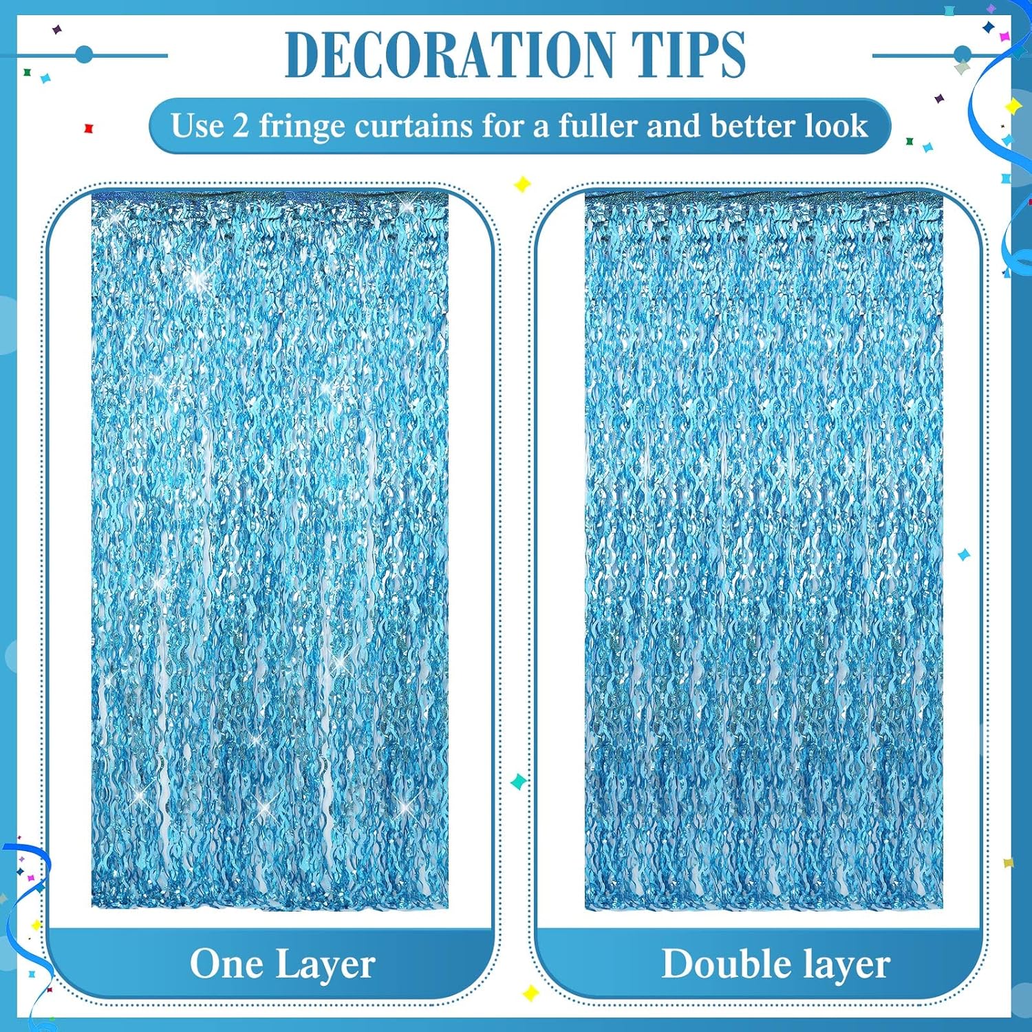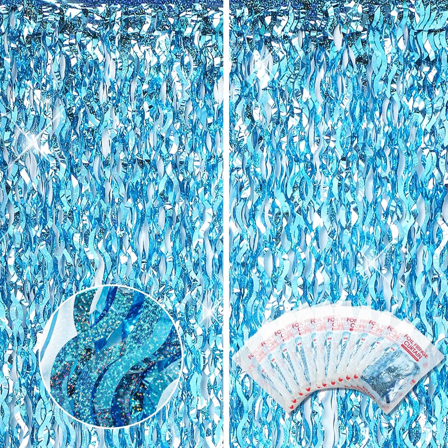 10 Pieces 3.3 x 6.6 Ft Foil Fringe Backdrop Party Wavy Tinsel Fringe Curtain Streamer for Happy New Year Carnival Party Favor 80s 90s Disco Ocean Sea Mermaid Birthday Wedding(Blue)