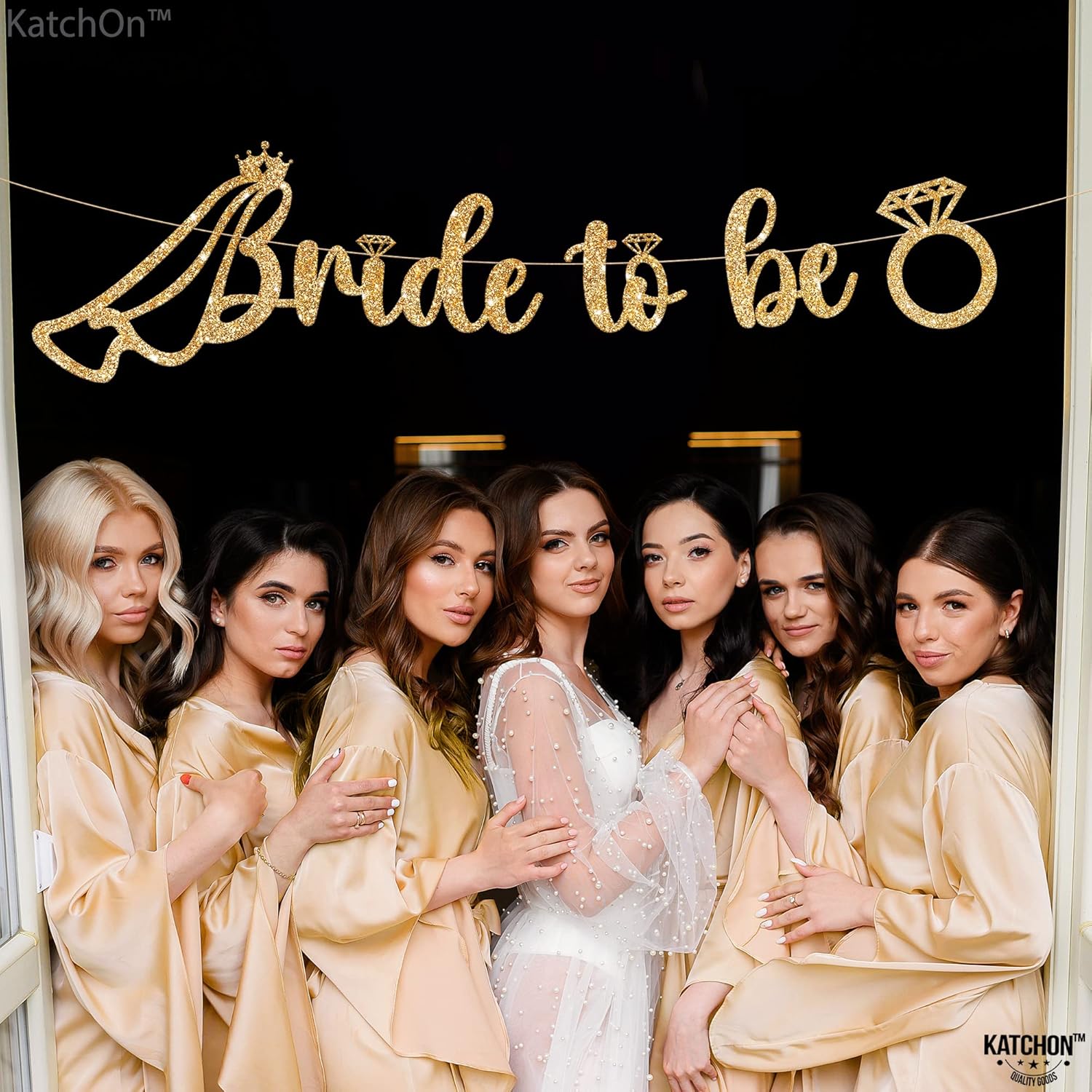 KatchOn, Glitter Bride to Be Banner Gold - 10 Feet, No DIY | Bridal Shower Banner for Bridal Shower Decorations | Gold Bachelorette Party Decorations | Bride to Be Decorations