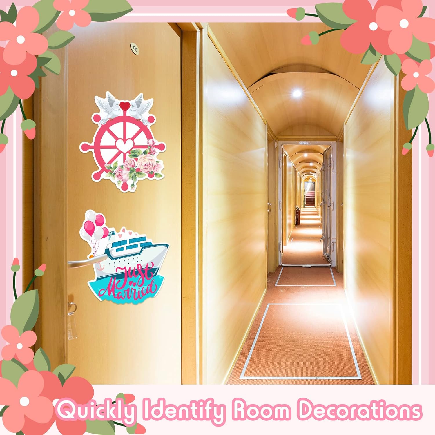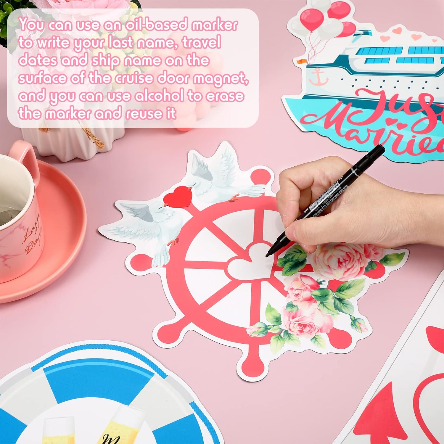 - Delicate and Romantic: these cruise ship door magnets are designed with romantic and exquisite patterns, like anchors, hearts, veil, life rings, wine glasses, rudders, birds, flowers, cruise ships and printed with the [just married] words, full of a warm and joyous atmosphere