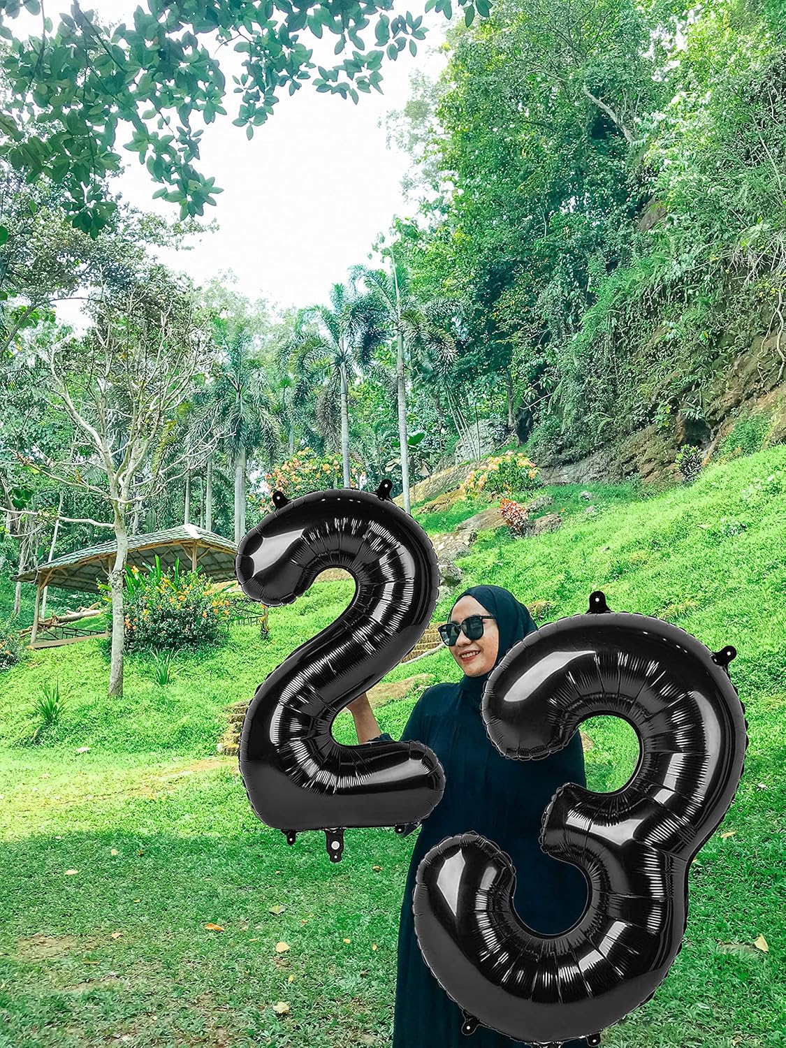 - 【How to Use】- Fill 90% with helium or air, then tie with ribbon or secure with balloon tape. The foil balloons can be reused and deflated with a straw after the party. When you put them away, they can turn into beautiful black number balloons again next time!