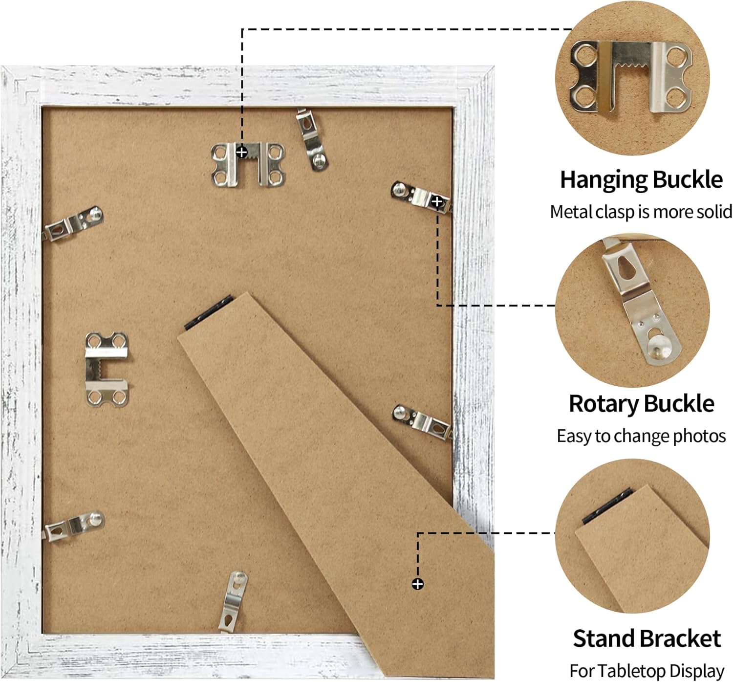 - Multi Frames Collage Set: Includes 4 frames in the same size. Perfectly fits 8.5x11 inch pictures without mat. The frame opening display size is 0.5 inches smaller than the photo size for secure mounting.