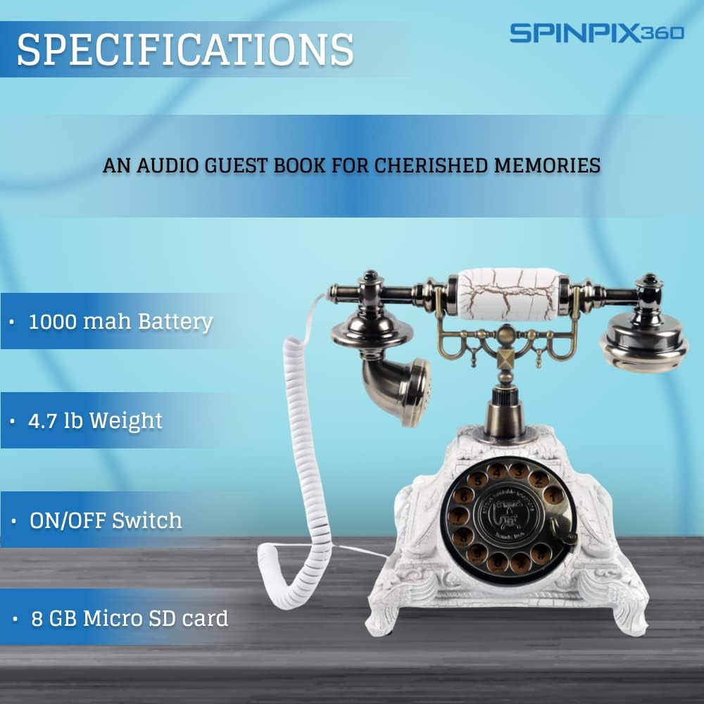 - Ideal Gift: The Audio Guest Book Phone from the Spinpix360 makes for a unique and thoughtful gift. It's perfect for anyone who appreciates vintage and retro items, and is an ideal choice for weddings, birthdays, anniversaries, or retirement parties. It's also a great way to preserve memories from any special occasion, and will be treasured for years to come.